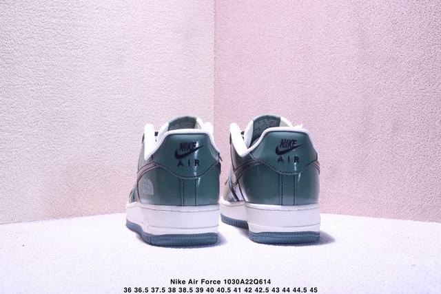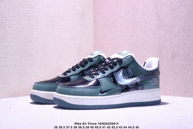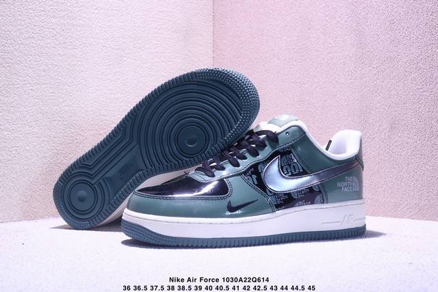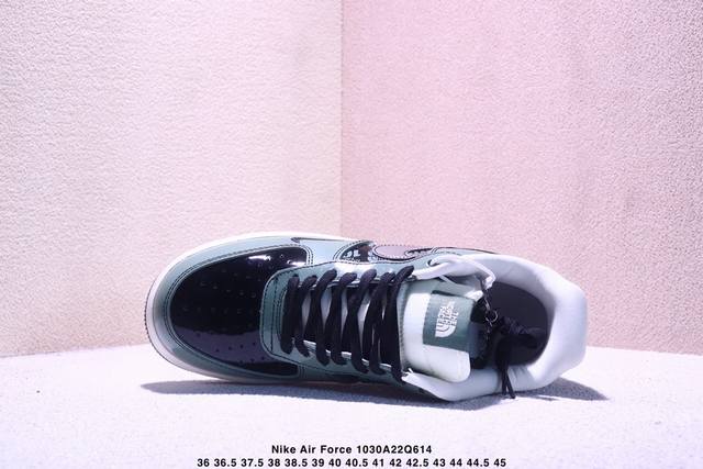 Limited release of an overseas hot item! High-end custom Nike Air Force 1 '07 Low "The North Face Collaboration---Military Green" features a retro military green patent leather upper, giving it a premium feel and high recognizability; it has a strong visual impact and attracts attention with every step; the midsole continues the classic PU cushioning structure of the Air Force 1, using a one-piece molding process with precisely adjusted density to balance cushioning and support. The outsole is a combination of rubber and green trim. These high-end custom low-top casual sneakers come in a custom shoebox from a large factory, ensuring high quality and exceptionally clean leather with no rough edges and perfect details. Product No.: Df0188-100. Sizes : 36, 36.5, 37.5, 38, 38.5, 39, 40, 40.5, 41, 42, 42.5, 43, 44, 44.5, 45. (