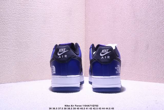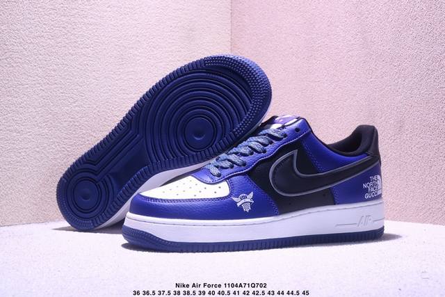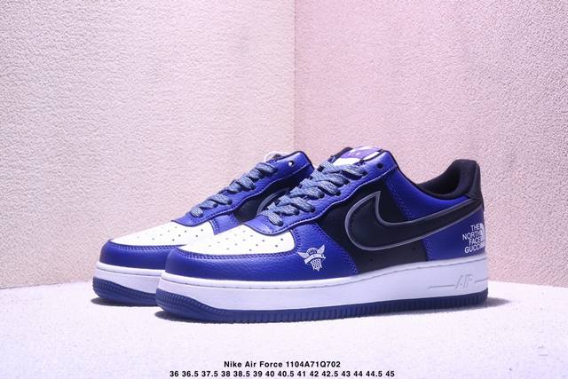 Limited-edition overseas bestseller! Company-grade Nike Air Force 1 '07 Low "The North Face x Gucci x Air Force 1 White/Blue/Black" high-end custom low-top sneakers/casual shoes with complex folded edge stitching, original last, original cardboard, original shoe box, custom hardware accessories, built-in full-length air cushion, original sole. Product Code: Xj9168-001 Sizes: 36 36.5 37.5 38 38.5 39 40 40.5 41 42 42.5 43 44 44.5 45 Xm1104Q702