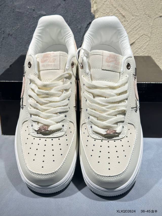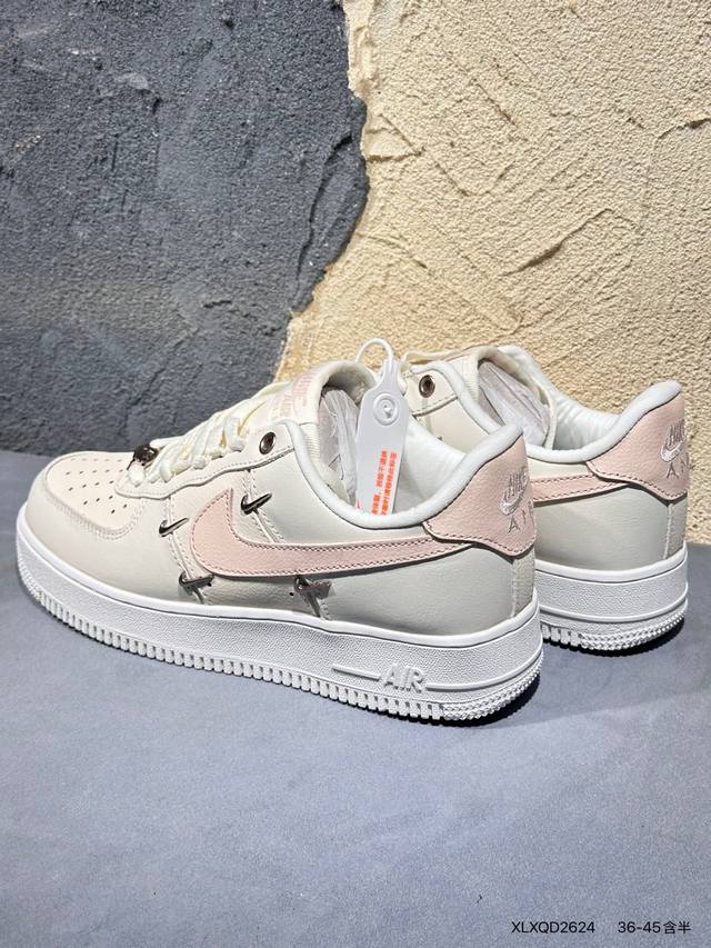 Nike Air Force 7 Low Collaboration Rose Gold Swoosh Air Force 1 Low-Top Casual Sneakers# Classic needs no doubt. Its extremely high appearance rate on the street has proven its charm. The four small silver swooshes neatly arranged on the side of the shoe highlight novelty and individuality on the classic basis. The various cool outfits worn by trendsetters also inject more fresh vitality into this retro shoe.