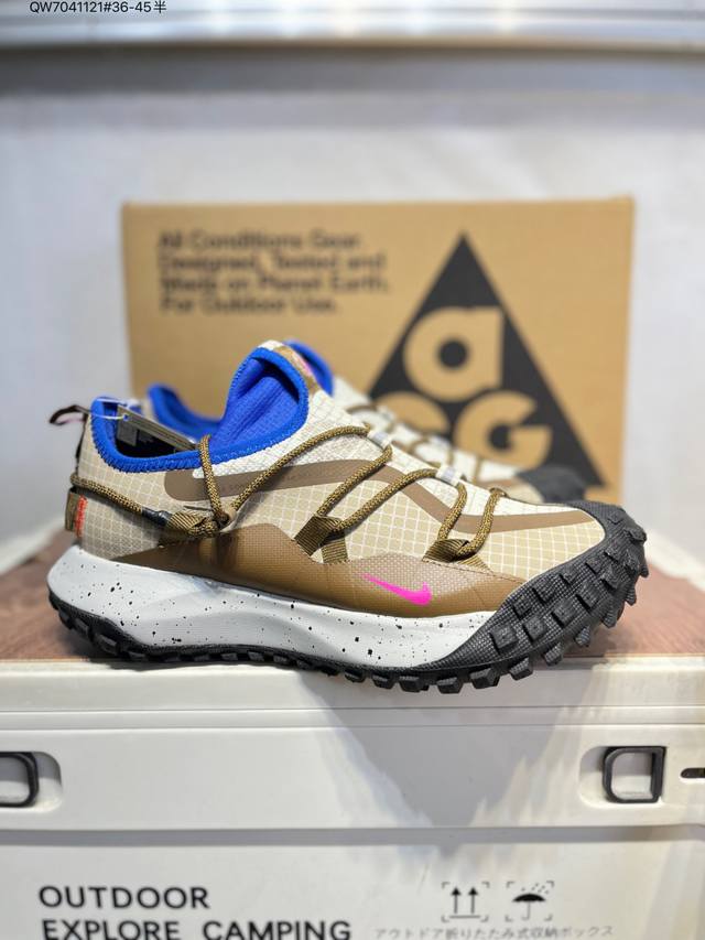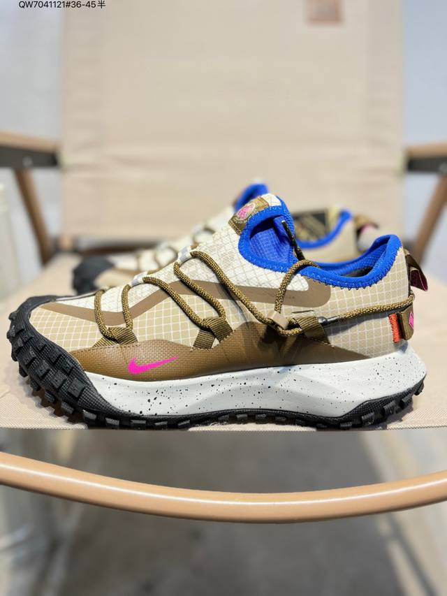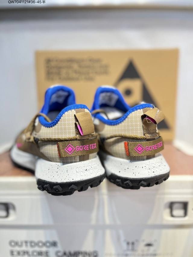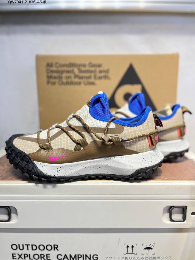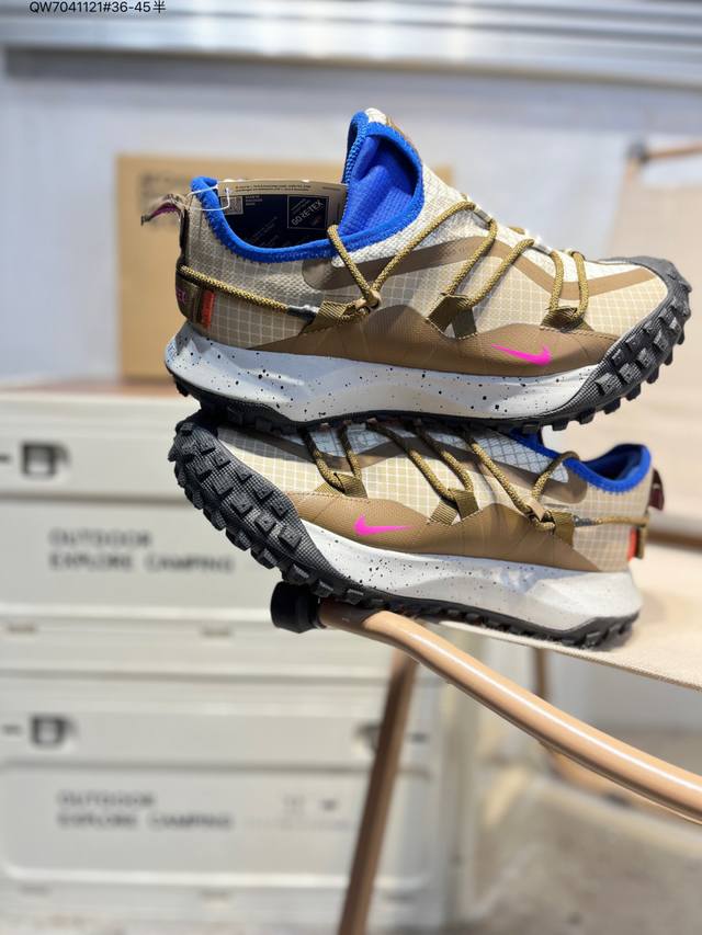Nike Acg Mountain Fly Low Gtx Se Men's and Women's Outdoor Hiking Shoes. Meticulously designed for durability and speed, these shoes allow you to explore deserts, canyons, and deep mountains with ease, just like in the city, effortlessly handling various challenges. The upper is made of Gore-Tex material, lightweight, durable, and water-repellent, combined with an easy-pull lacing system for a personalized wearing experience. The tacky rubber outsole provides excellent grip for climbing, while the soft React foam midsole delivers exceptional comfort, making it suitable for both city hiking and outdoor climbing. Im6672 Qw7041121#36-45 Half D DD