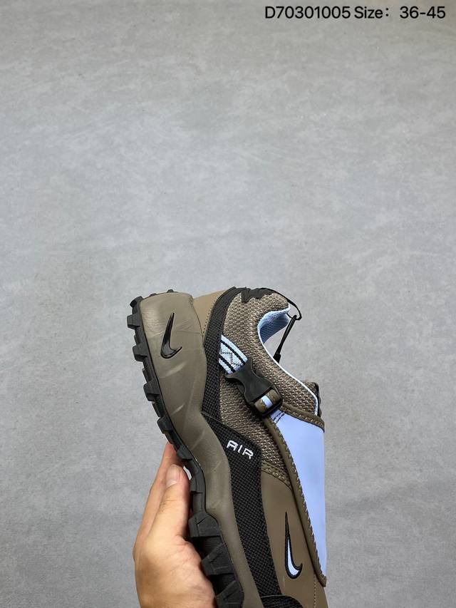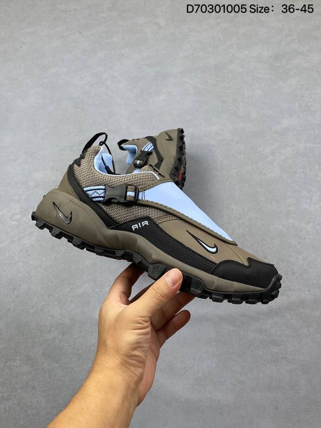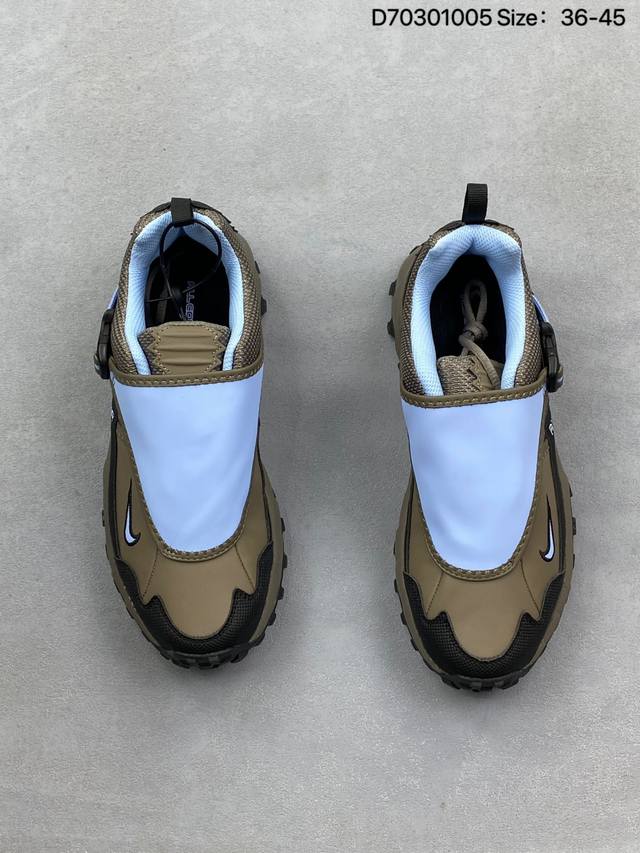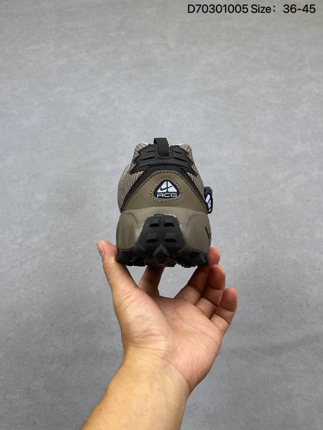 Nike Acg Phassad Men's and Women's Off-Road Running Shoes. The overlay design, inspired by a tent flap, cleverly conceals the laces for a sleek look. The durable outsole makes it easy to handle in both city streets and off-road trails. The synthetic and fabric upper, combined with the tent flap-inspired overlay, conceals the laces when fastened. The robust outsole provides excellent durability and traction on various surfaces, while Nike Air technology delivers a cushioned stride. The Nike Acg features a stylish design to help cope with adverse weather conditions, making it easy to wear in the city or explore outdoors. Climate-adaptive materials combined with breathable technology provide excellent support, and the cutting-edge design offers versatile storage and styling options. Product Code: Hm7133 Sizes: 36-45 Code: D70301005