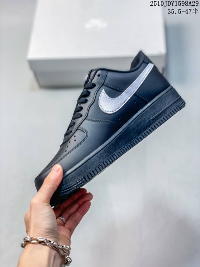 Nike Air Force 1 '07 Low Sneakers, black and white, original last, original cardboard, perfect cleanliness, full-length built-in honeycomb air cushion, steel stamp on the midsole, perfect zip closure. Product Code: Fz0627-010. Sizes: 35.5 36 36.5 37.5 38 38.5 39 40 40.5 41 42 42.5 43 44 44.5 45 46 47. (Note: The last part, "10Jdy1598A29," appears to be a product code and doesn't need a direct translation. It has been left as is.)