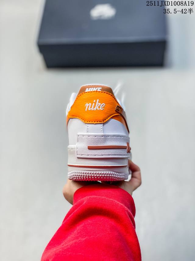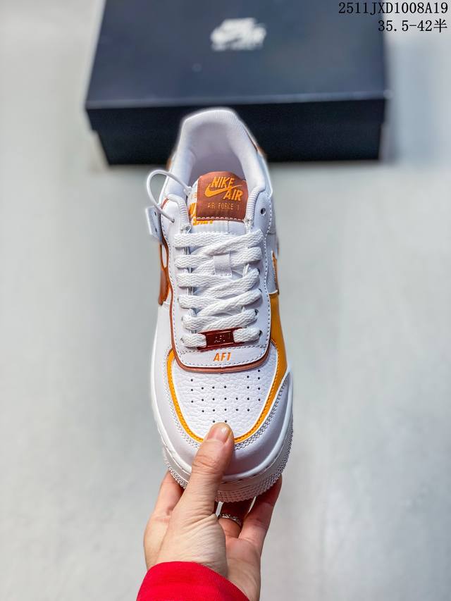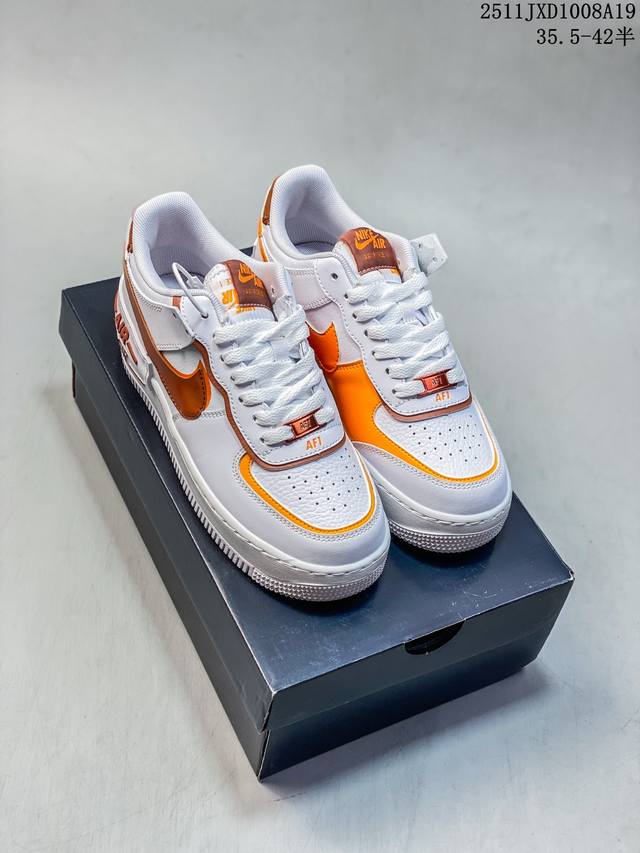 Nike Air Force 1 Af1 (Low-top) Sneakers, featuring a thick sole and versatile design. The Nike Air Force 1 "Shadow" is quite similar in design to the DDD Sacai X Nike series, with a strong deconstructed style. The Swoosh on the side is layered, and the iconic "Air" lettering is also layered on the heel, resulting in a highly individualistic look. (DD 11Jxd1008A19)