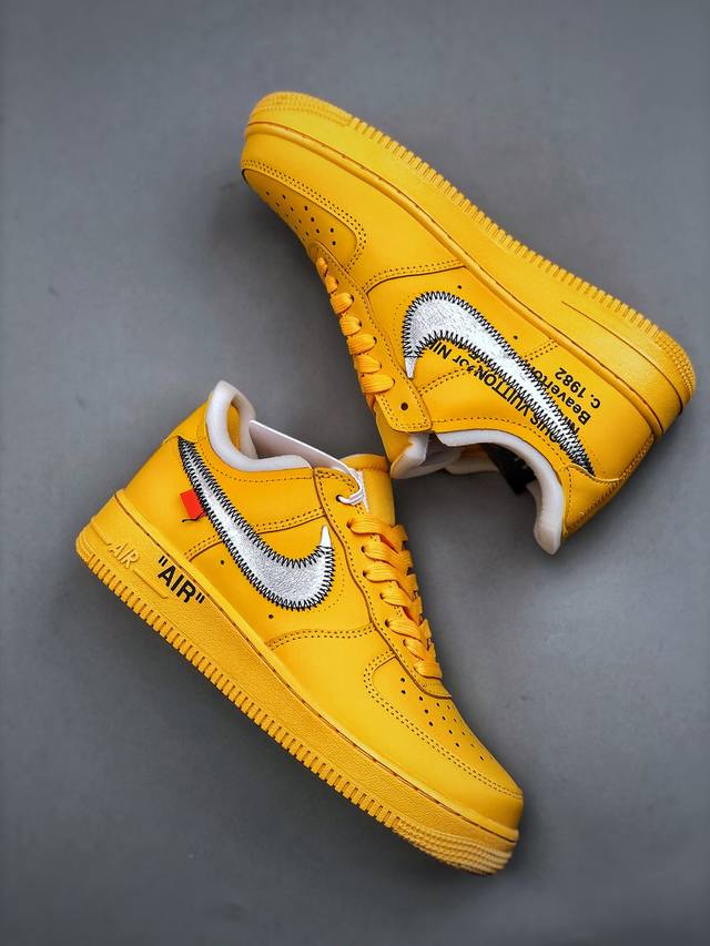 Nike Air Force 1 "Lemonade" Ow collaboration with Yellow Art Museum Dd1876-700. A complete set of original lasts, developed from Vietnam's original large soles, sourced at high expense from Prime Asia Bailey imported leather. The inner slogan font features three different sizes, featuring original inks for consistent color, brightness, and high-frequency effects. Computerized sewing throughout the shoe ensures a perfect visual effect. Original upper stitching, standard four-thread density, precise needle length, and pinhole size control. Original reverse mesh sponge, accurate color matching, and mesh size. Original Hong Kong treasure support for a perfectly restored silhouette, original box, and 100% authentic from the inside out. Built-in Sole air cushion midsole with white adhesive backing. Sizes 36-45