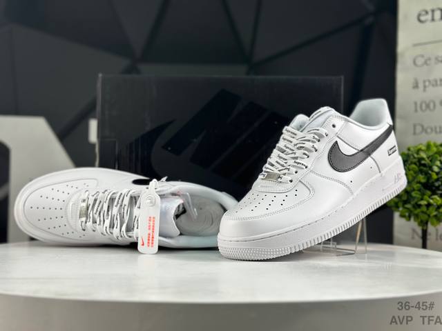 Nike Air Force 1 Low, a low-top athletic and casual sneaker. Made with original last and cardboard, this authentic Air Force 1 shoe is designed for export. It features a full-length internal honeycomb air cushion, original box and accessories, original factory midsole stamp, and perfect upper. Product Code: Cu9225 102. Size: As shown in the picture. Avp Tfa.