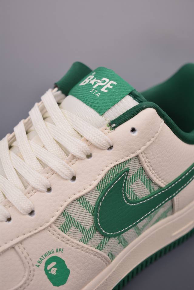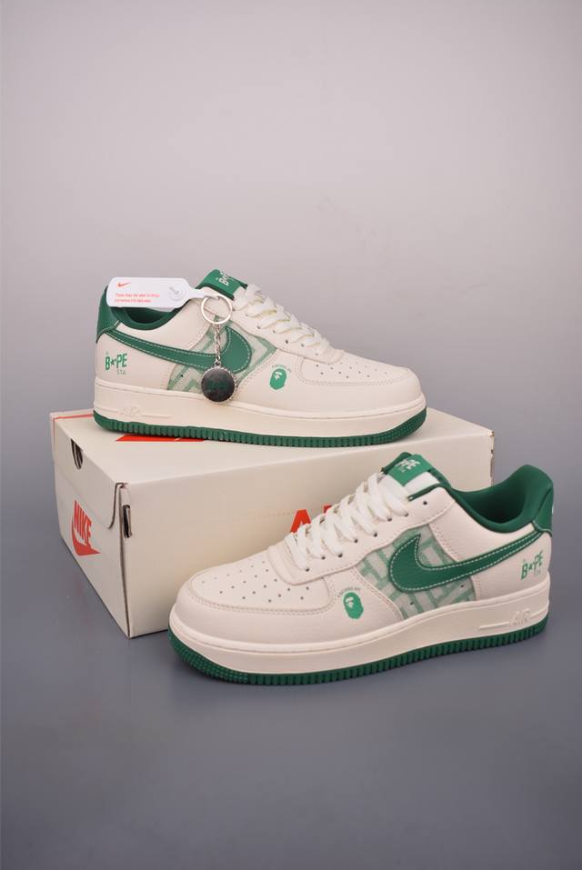 Nike Air Force 1 Low Ape Head Collaboration. Made with original last and cardboard, this authentic Air Force 1 silhouette is crafted using original materials. Focused on export channels, it features a full-length internal honeycomb air cushion. Original box, accessories, original factory midsole stamp, and perfect last sizing. Official product code: Dk0188 0891635. Sizes: 36, 36.5, 37.5, 38, 38.5, 39, 40, 40.5, 41, 42, 42.5, 43, 44, 45.