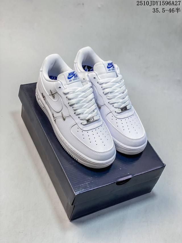 Nike Air Force 1 Low Collaboration with Silver Swoosh - Low-top athletic and casual sneakers. Made with original last and cardboard, this authentic Air Force 1 design is exclusively for export. Features a full-length honeycomb air cushion, original box and accessories, original factory midsole stamp, and perfect upper. Product Code: Ct1990- Sizes: 35.5 36 36.5 37.5 38 38.5 39 40 40.5 41 42 42.5 43 44 44.5 45 46 (Item number: 10Jdy1596A27)