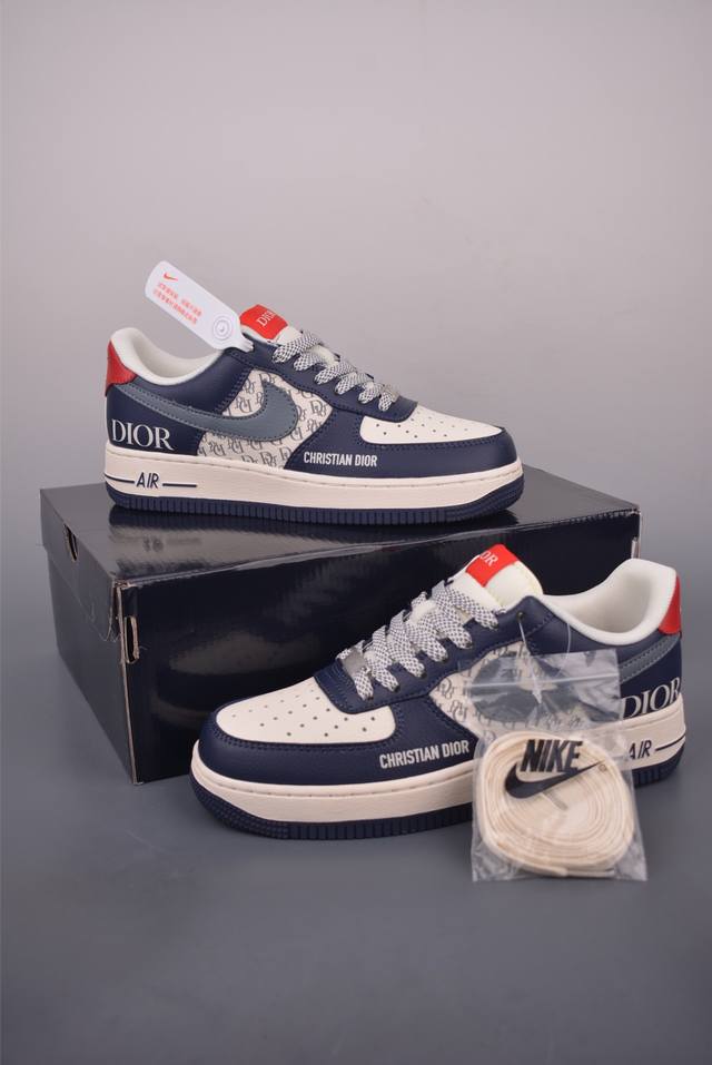 Nike Air Force 1 Low Dior Collaboration. Made with original last and cardboard, this authentic Air Force 1 silhouette is made for export. Features a full-length internal honeycomb cushioning unit. Comes with original box, accessories, and factory-stamped midsole. Perfect fit. Official product code: Xd2588 603K. Sizes: 36, 36.5, 37.5, 38, 38.5, 39, 40, 40.5, 41, 42, 42.5, 43, 44, 45.