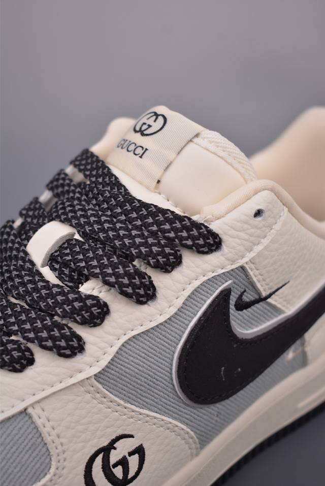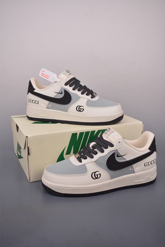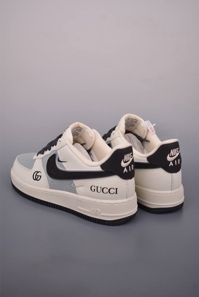 Nike Air Force 1 Low Gucci Collaboration. Made with original last and cardboard, this authentic Air Force 1 silhouette is crafted using original materials. Specializing in export channels, it features a full-length internal honeycomb cushioning system. Comes with original box and accessories, original factory midsole stamp, and perfect last sizing. Official product code: Yf9511 808K. Sizes: 36, 36.5, 37.5, 38, 38.5, 39, 40, 40.5, 41, 42, 42.5, 43, 44, 45.