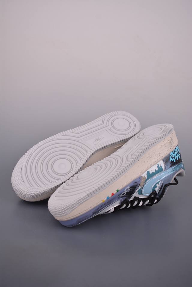 Nike Air Force 1 Low, hand-painted graffiti deconstructed strap design, original last and cardboard for authentic Air Force silhouette, specializing in export channels, full-length built-in honeycomb cushioning, original box and accessories, original factory midsole stamp, perfect laces. Official product number: XL2312 101K. Sizes: 36, 36.5, 37.5, 38, 38.5, 39, 40, 40.5, 41, 42, 42.5, 43, 44, 45.