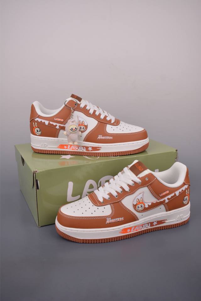 Nike Air Force 1 Low Labubu Collaboration. Made with original last and cardboard, this authentic Air Force 1 silhouette is made for export. Features a full-length internal honeycomb cushioning unit. Comes with original box, accessories, and factory-stamped midsole. Perfect fit. Official product code: Kj5188 0031635. Sizes: 36, 36.5, 37.5, 38, 38.5, 39, 40, 40.5, 41, 42, 42.5, 43, 44, 45.