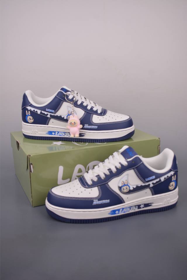 Nike Air Force 1 Low Labubu Collaboration. Made with original last and cardboard, this authentic Air Force 1 silhouette is crafted using original materials. Specializing in export channels, it features a full-length internal honeycomb cushioning unit. Comes with original box and accessories, original factory midsole stamp, and perfect last sew. Official product code: Kj5188 002K. Sizes: 36, 36.5, 37.5, 38, 38.5, 39, 40, 40.5, 41, 42, 42.5, 43, 44, 45.