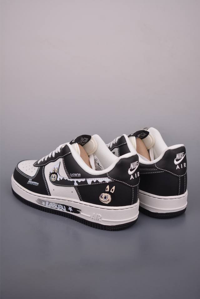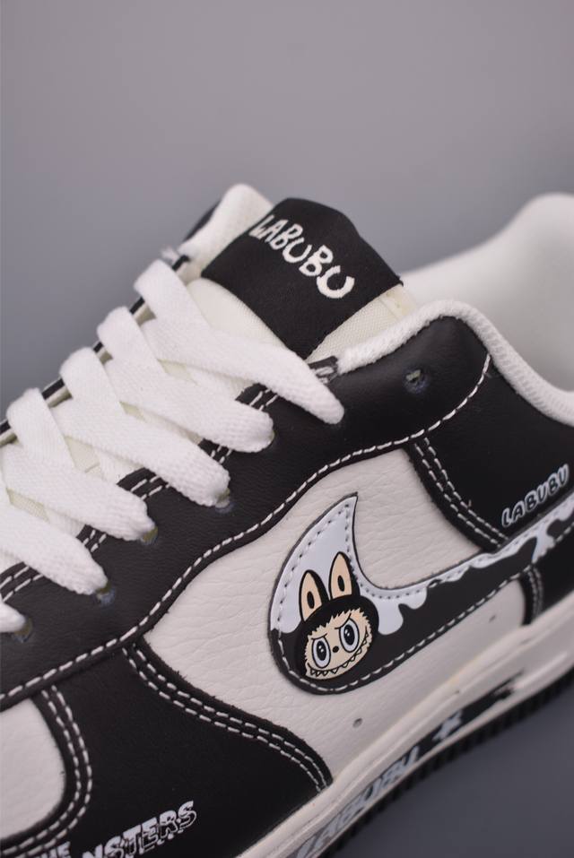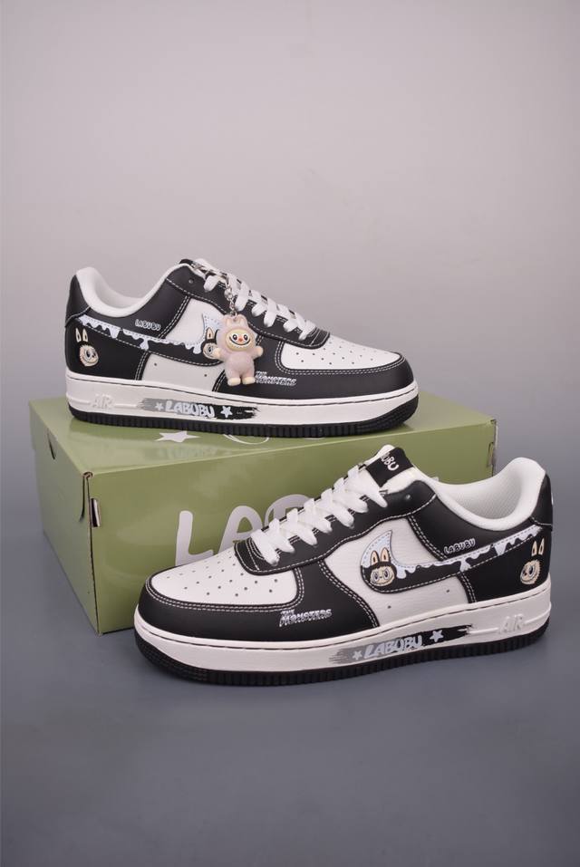 Nike Air Force 1 Low Labubu Collaboration. Made with original last and cardboard, this authentic Air Force 1 silhouette is made for export. Features a full-length internal honeycomb cushioning unit. Comes with original box, accessories, and factory-stamped midsole. Perfect fit. Official product code: Kj5188 001K. Sizes: 36, 36.5, 37.5, 38, 38.5, 39, 40, 40.5, 41, 42, 42.5, 43, 44, 45.