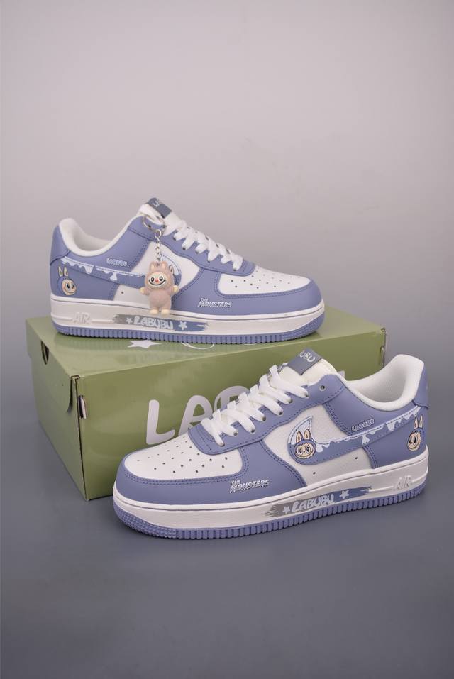 Nike Air Force 1 Low Labubu Collaboration. Made with original last and cardboard, this authentic Air Force 1 silhouette is made for export. Features a full-length internal honeycomb cushioning unit. Comes with original box, accessories, and factory-stamped midsole. Perfect fit. Official product code: Kj5188 004. Sizes: 36, 36.5, 37.5, 38, 38.5, 39, 40, 40.5, 41, 42, 42.5, 43, 44, 45.