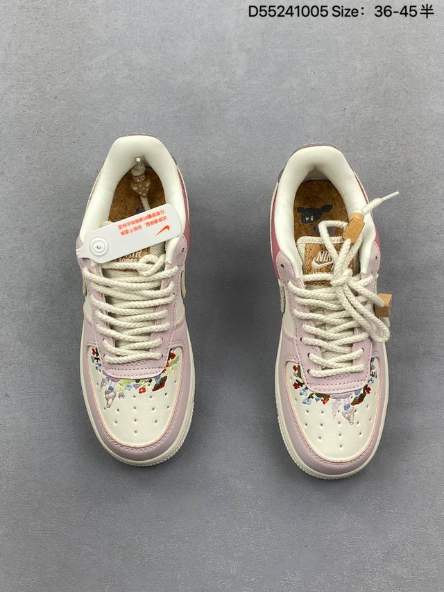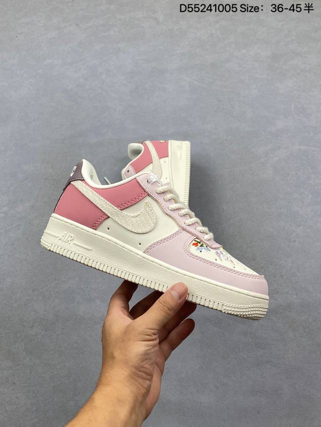 Nike Air Force 1 Low Pink and White Low-Top Sports and Casual Sneakers. Made with original last and cardboard, this authentic Air Force 1 shoe is designed for export. Features a full-length honeycomb air cushion, original box and accessories, original factory midsole stamp, and perfect upper. Product Code: Ib8874 111 Sizes: 36-45.5 D5524 5