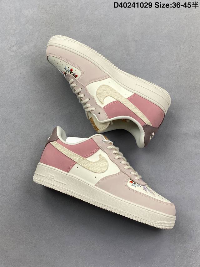 Nike Air Force 1 Low Pink and White Low-Top Sports and Casual Sneakers. Made with original last and cardboard, this authentic Air Force 1 shoe is designed for export. Features a full-length honeycomb air cushion, original box and accessories, original factory midsole stamp, and perfect upper. Product Code: Ib8874 111 Sizes: 36-45.5 D40241029