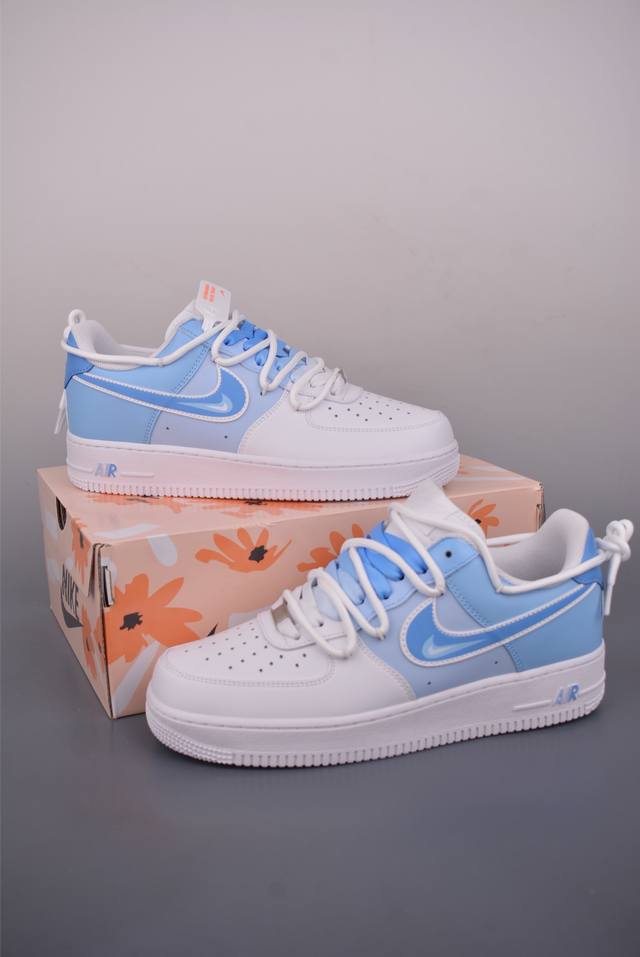 Nike Air Force 1 Low, Sky Blue & White Deconstructed Strappy Shoes. Made with original last and cardboard for a pure Air Force fit. Focused on export channels. Full-length internal honeycomb cushioning. Original box, accessories, original factory midsole stamp, perfect upper. Official product number: Cd2288 951K. Sizes: 36 36.5 37.5 38 38.5 39 40 40.5 41 42 42.5 43 44 45.