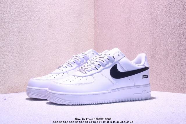 Nike Air Force 1 Low Supreme Collaboration Air Force 1 Low-Top Sports and Casual Sneakers. Made with original last and cardboard, authentic Air Force design. Focused on export channels. Full-length internal honeycomb air cushion. Original box and accessories. Original midsole stamp. Perfect upper. Product Code: Cu9225-102. Sizes: 36 36.5 37.5 38 38.5 39 40 40.5 41 42 42.5 43 44 44.5 45. Xm1030Q589