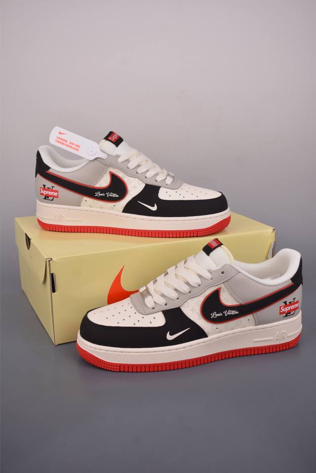 Nike Air Force 1 Low Supreme Collaboration. Made with original last and cardboard, this is a genuine Air Force 1 design. Focused on export channels, it features a full-length built-in honeycomb air cushion. Original box and accessories, original factory midsole stamp, and perfect last. Official product number: Xs1958 6292529. Sizes: 36, 36.5, 37.5, 38, 38.5, 39, 40, 40.5, 41, 42, 42.5, 43, 44, 45.