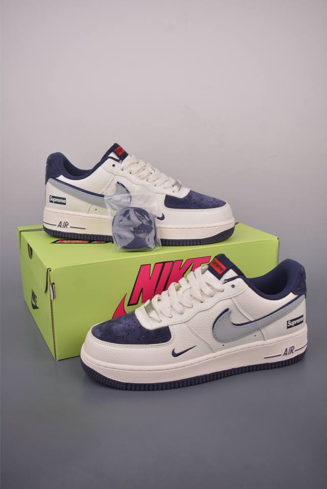 Nike Air Force 1 Low Supreme Collaboration. Made with original last and cardboard, this authentic Air Force 1 silhouette is crafted using original materials. Focused on export channels, it features a full-length internal honeycomb air cushion. Original box, accessories, original midsole stamp, and perfect last sew. Official product code: Kx2532 5041124. Sizes: 36, 36.5, 37.5, 38, 38.5, 39, 40, 40.5, 41, 42, 42.5, 43, 44, 45.
