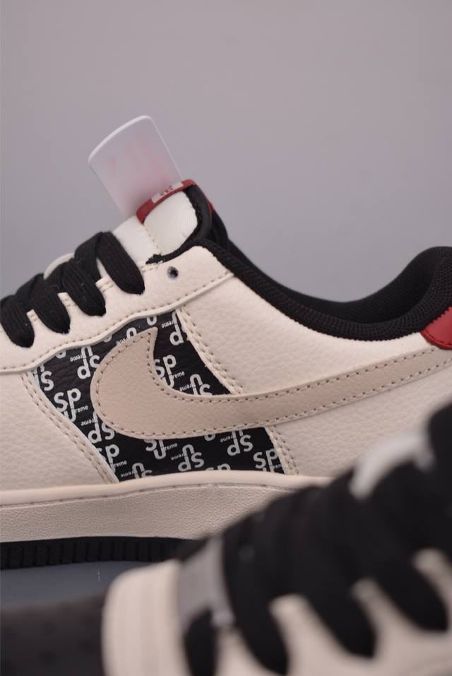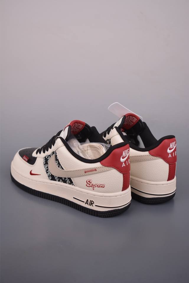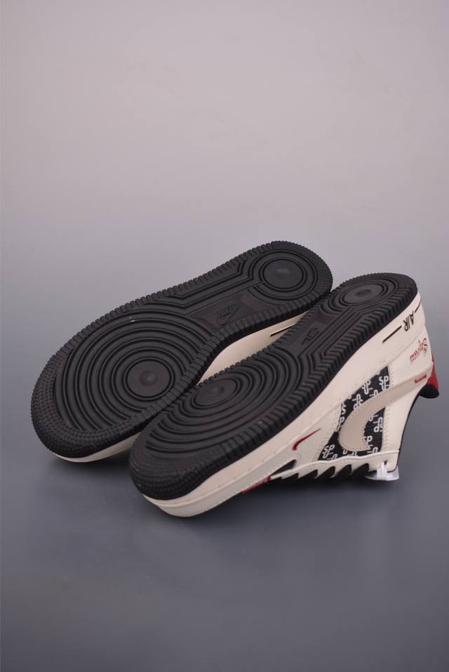 Nike Air Force 1 Low Supreme Collaboration. Made with original last and cardboard, this authentic Air Force 1 silhouette is made for export. Features a full-length internal honeycomb cushioning unit. Comes with original box, accessories, and factory-stamped midsole. Perfect fit. Official product code: Xd2588 6102226. Sizes: 36, 36.5, 37.5, 38, 38.5, 39, 40, 40.5, 41, 42, 42.5, 43, 44, 45.