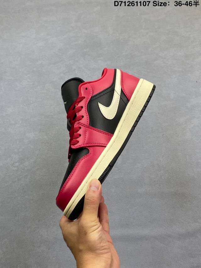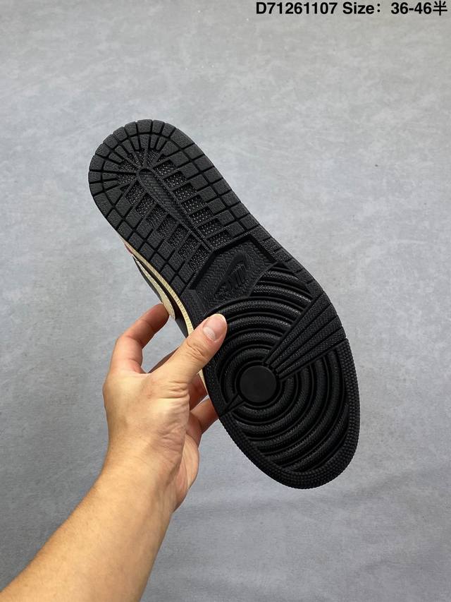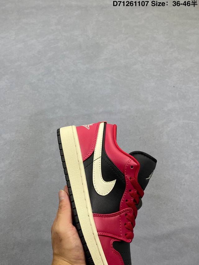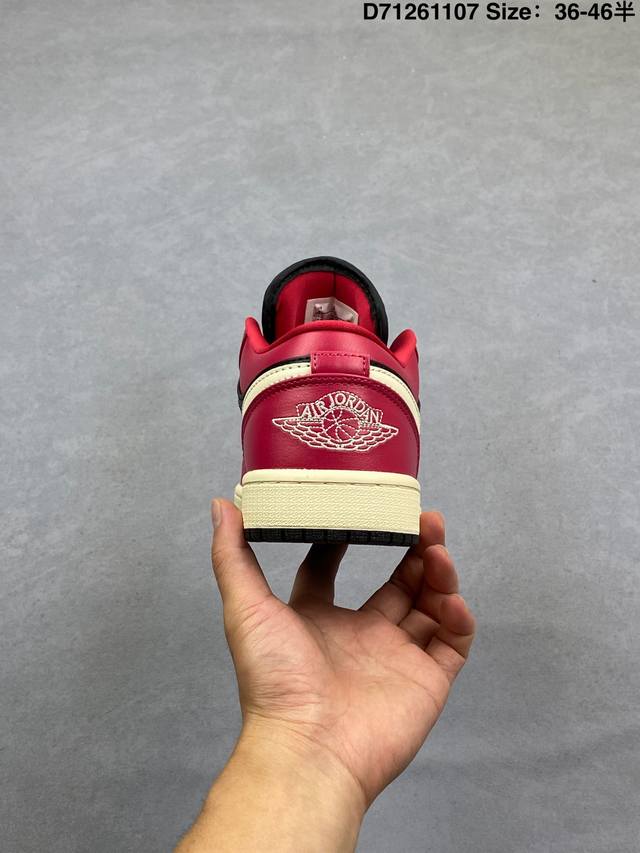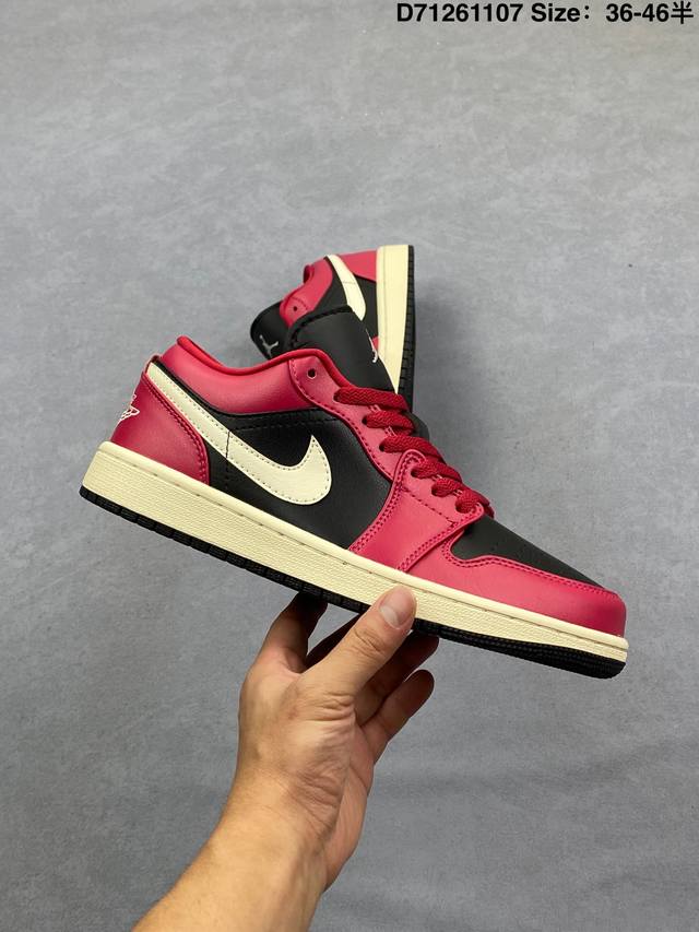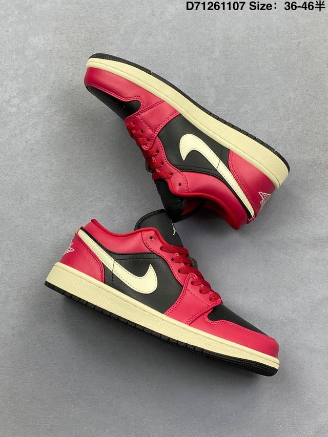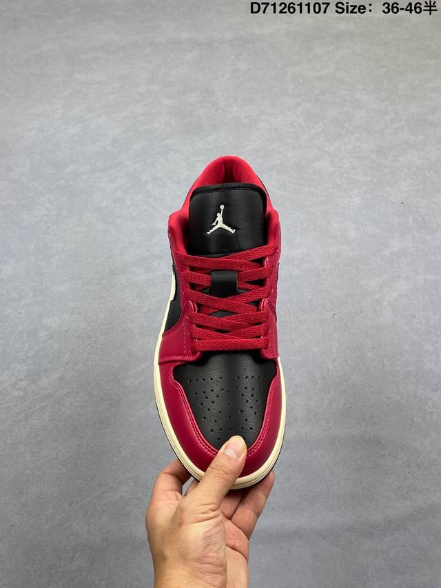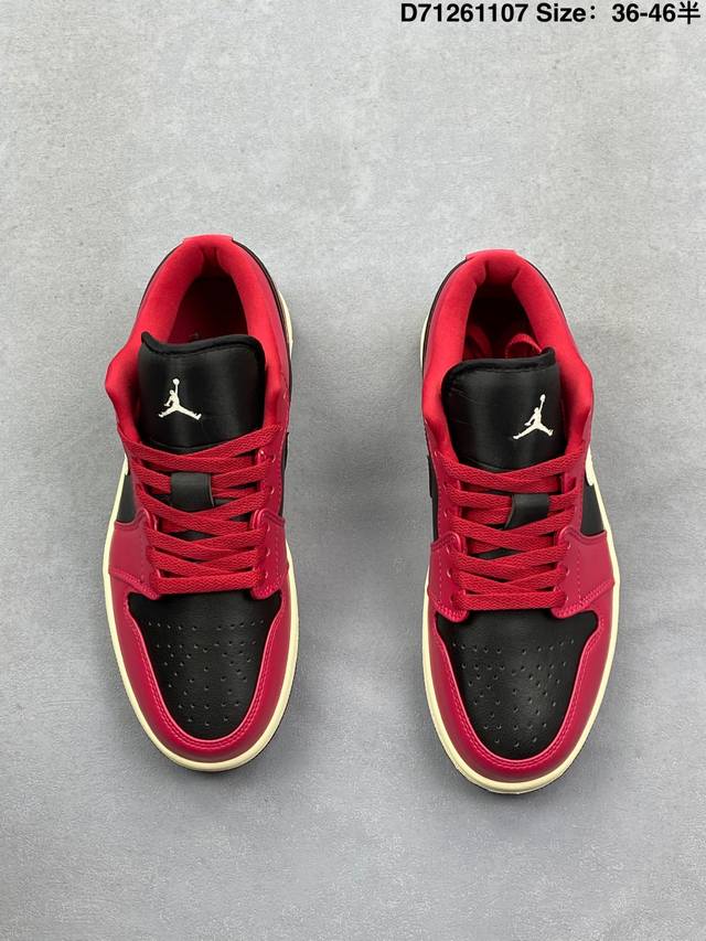 Nike Air Jordan 1 Low AJ1, a low-top retro-style casual basketball shoe. Inspired by the original 1985 model, this shoe offers a fresh take on a simple yet classic look, feeling familiar yet innovative. Stitching details and an embroidered Wings logo on the heel highlight the distinctive style of the Jordan brand. The leather upper provides excellent structure and durability. The sole incorporates Nike Air cushioning technology for a lightweight and shock-absorbing feel, while the rubber outsole provides exceptional traction, making it a great everyday choice. Features include a Wings logo on the heel, perforated toe, and a foam midsole. Product Code: Dc0774 138 Code: D71261107 Size: 36