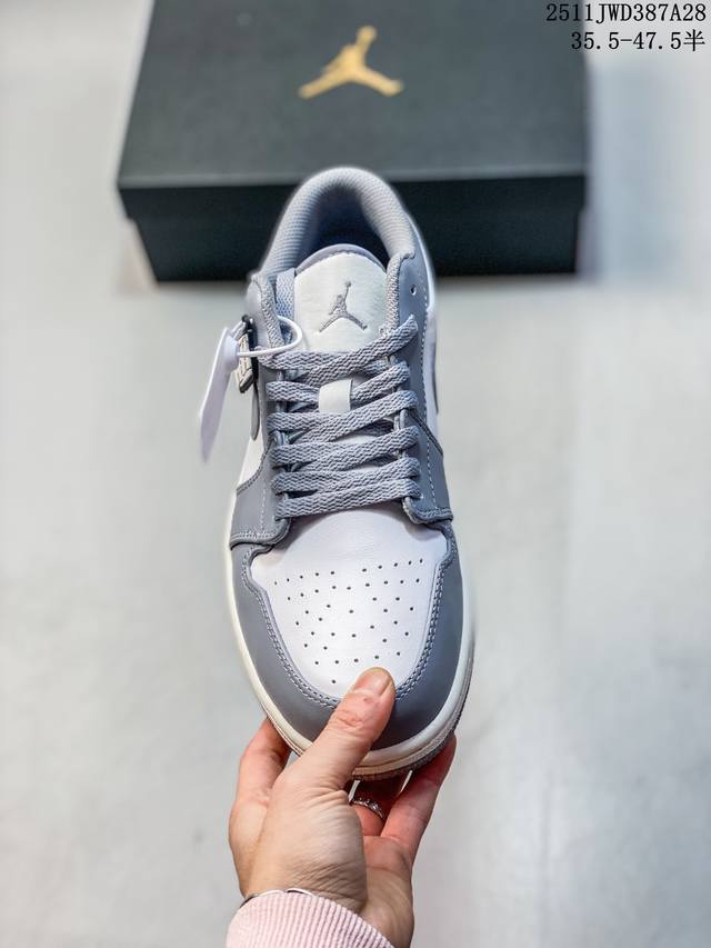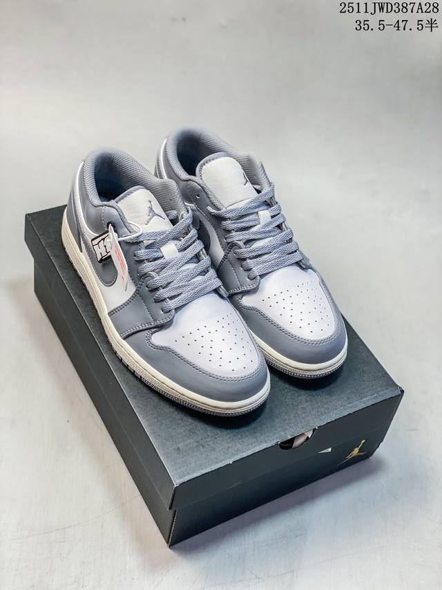 Nike Air Jordan 1 Low AJ1, a low-top retro-style casual basketball shoe. Inspired by the original 1985 model, this shoe offers a fresh take on a simple yet classic look, feeling familiar yet innovative. Stitching details and an embroidered Wings logo on the heel highlight the distinctive style of the Jordan brand. The leather upper provides excellent structure and durability. The sole incorporates Nike Air cushioning technology for a lightweight and shock-absorbing feel, while the rubber outsole provides exceptional traction, making it a great everyday choice. Features include the Wings logo on the heel, perforated toe, and a foam midsole. Type: Men's/Women's Shoes Product Code: 553558-053 11Jwd387A28