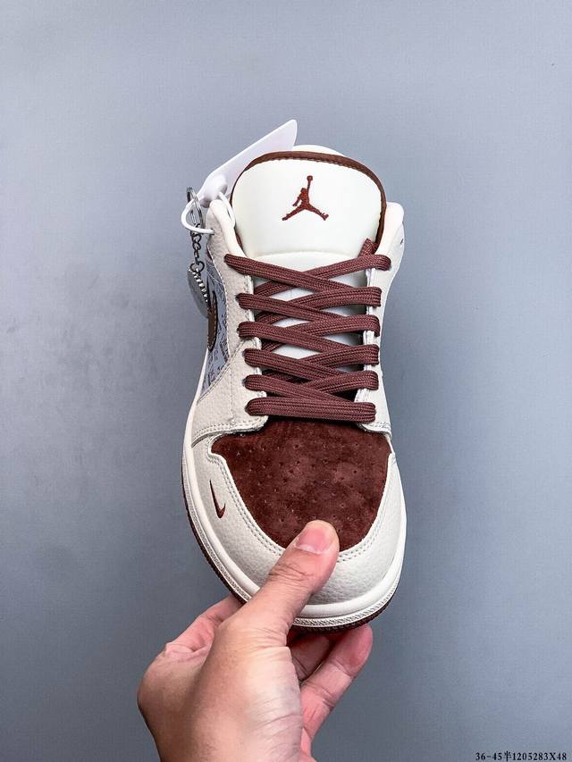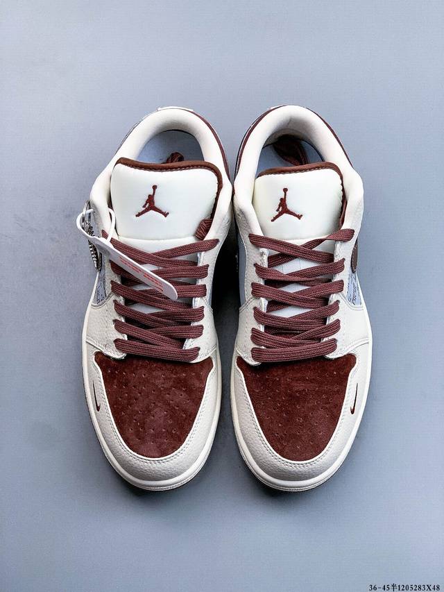 Nike Air Jordan 1 Low (AJ1) - A low-top trendy casual sneakers. Perfectly crafted AJ1 low-top design with genuine top-grain cowhide leather. Features built-in cushioning. Original shoe mold, no generic soles. Company-supplied raw materials, authentic and faithful to the original. (Ddd 1205283X48 DDD)
