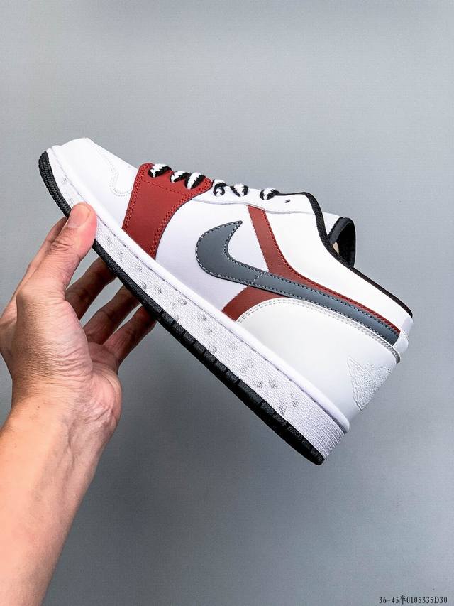 Nike Air Jordan 1 Low (AJ1) - A low-top trendy casual sneakers. Perfectly crafted AJ1 low-top design with genuine top-grain cowhide leather. Built-in cushioning unit. Original shoe mold, no generic soles. Company-supplied raw materials, authentic and faithful to the original. DDD 0105335D30 DDD