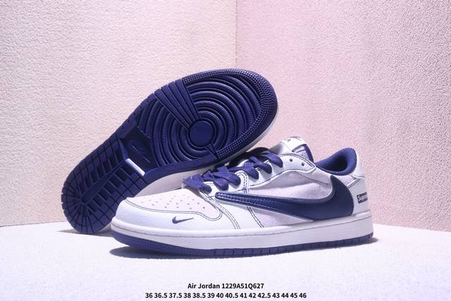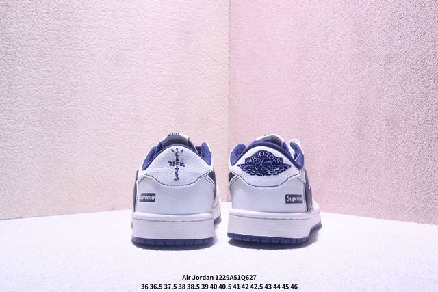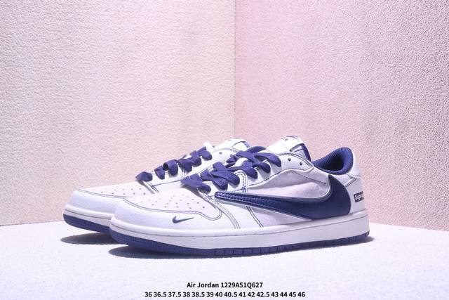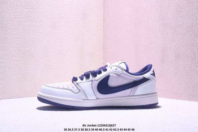 Nike Air Jordan 1 Low AJ1, the first generation of Jordan AJ1, a retro-style casual basketball shoe with a reverse swoosh. This shoe draws design inspiration from the original 1985 model, offering a fresh interpretation of its simple and classic look, feeling familiar yet innovative. Stitching details and an embroidered Wings logo on the heel highlight the unique style of the Jordan brand. The leather upper provides excellent structure and durability. The sole incorporates Nike Air cushioning technology for a lightweight and shock-absorbing feel, while the rubber outsole provides exceptional traction, making it a great everyday choice. It features a Wings logo on the heel, perforated toe, and a foam midsole. (Ddd Xm12 29Q627 DDD)