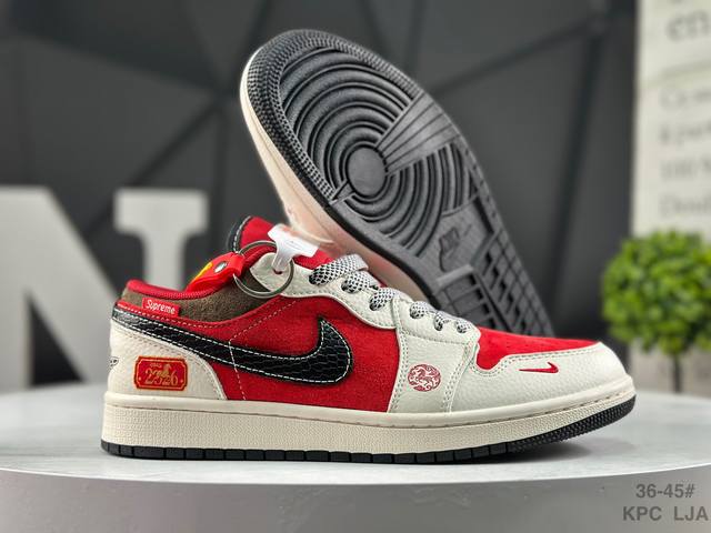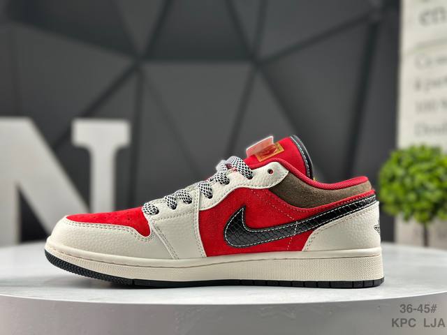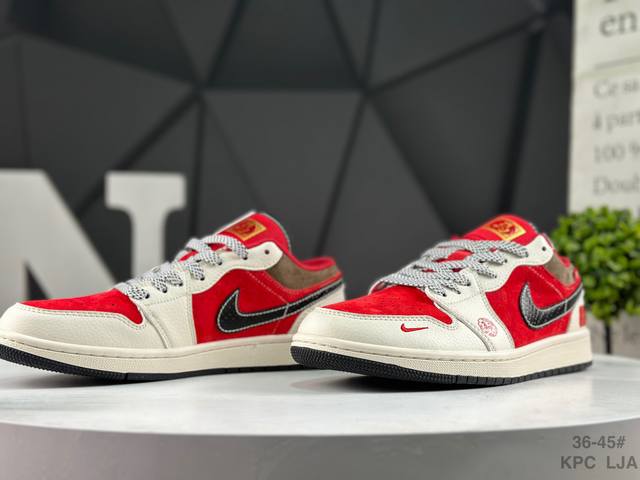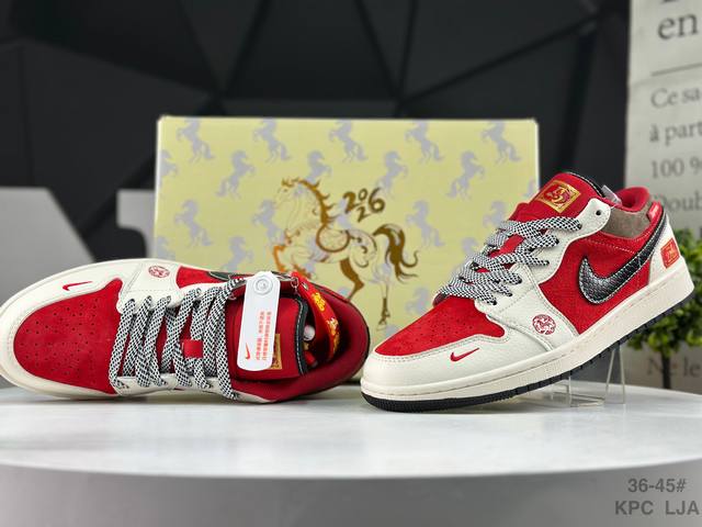 Nike Air Jordan 1 Low AJ1 (Year of the Horse Limited Edition) - Low-top trendy casual sneakers with reverse swoosh design. Perfectly crafted AJ1 low-top with genuine top-grain cowhide leather. Features built-in cushioning. Made with original molds, rejecting generic soles. Sources are sourced directly from the manufacturer, ensuring authenticity and faithfulness to the original. Product Code: Fc7688 203. Sizes: As shown in the picture.