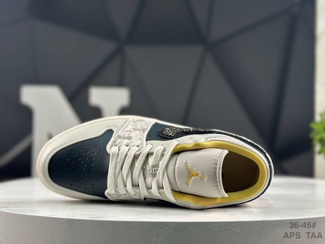 Nike Air Jordan 1 Low Blue Lemon AJ1. This low-top Jordan basketball shoe features a blue leather upper with bright yellow accents on the heel, creating a striking contrast. The white upper and black Swoosh logos on the sides maintain a classic, understated look, while the Jumpman logo on the lining and tongue is highlighted with bright red. The overall design exudes an irresistible freshness and energy. The Wingsx logo on the heel is embroidered in black, and the shoe is finished with a white midsole and black rubber outsole. Style Code: Dv1762 001 Size: As shown in the picture .