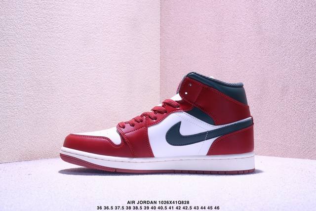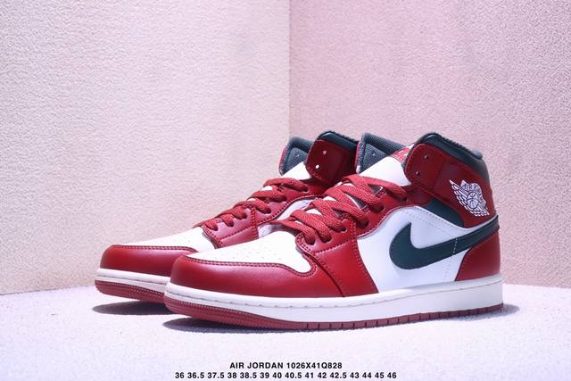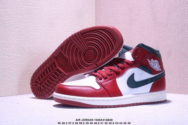 Nike Air Jordan 1 Mid Aj1 "Red, White, Green" Low-Top Basketball Shoes. Perfect quality, shipped as pictured. The upper is neatly cut, the perforations are clean and tidy, the midsole stitching is very clean overall. Product Code: Dq8426 105. Sizes: 36-46. (