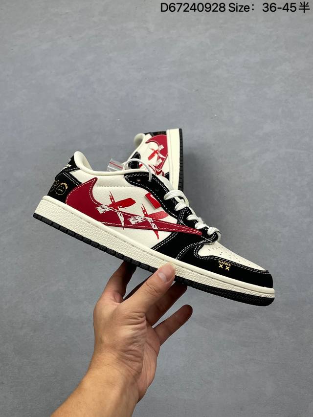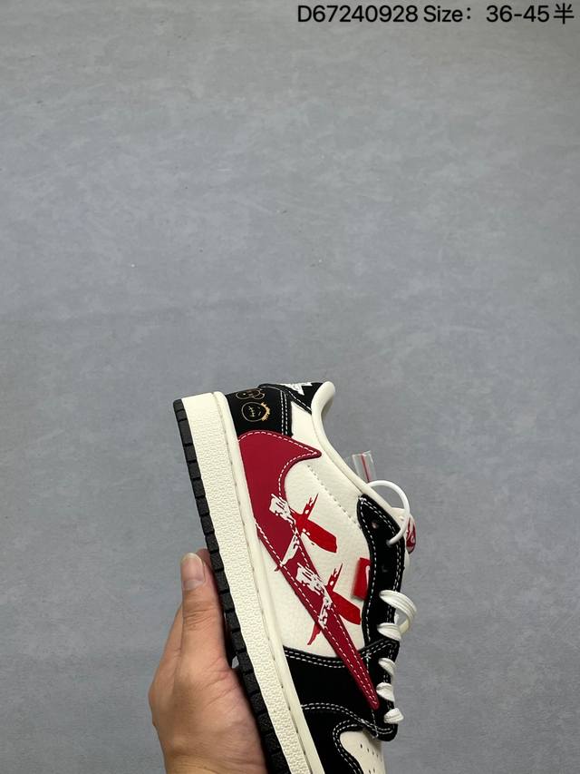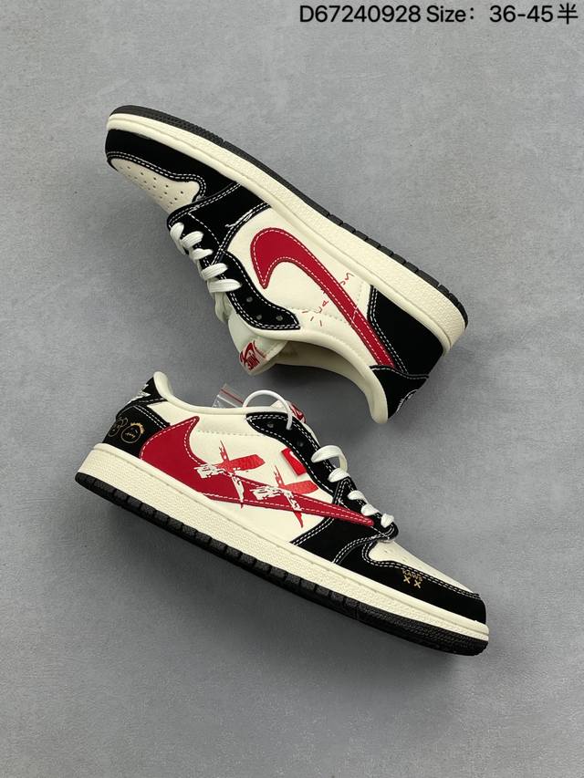 Nike Air Jordan 1 X Travis Scott Aj1 inverted hook Joe One inverted hook 'Diy' custom Nike low-top cultural basketball shoes