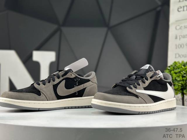 Nike Air Jordan 1 X Travis Scott AJ1 Low-Top Basketball Shoes. Perfect quality, details as shown in the pictures. The upper is neatly cut, the perforations are clean and tidy, and the overall cleanliness of the midsole stitching is excellent. Product Code: Cq4277 001. Sizes: 36, 36.5, 37.5, 38, 38.5, 39, 40, 40.5, 41, 42, 42.5, 43, 44, 45, 46, 47, 47.5. (ATc Tpa)
