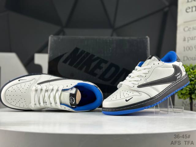 Nike Air Jordan 1 X Travis Scott AJ1 Low-Top Basketball Shoes. Perfect quality, details as shown in the pictures. The upper is neatly cut, the perforations are clean and tidy, and the overall cleanliness of the midsole stitching is excellent. Product Code: Dz5899-027. Sizes: 36, 36.5, 37.5, 38, 38.5, 39, 40, 40.5, 41, 42, 42.5, 43, 44, 45. (Afs Tfa DDD)