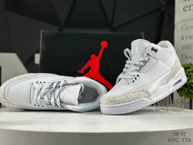 Nike Air Jordan 3 Retro Series Basketball Shoes for Men and Women. As one of the most widely recognized athletic shoes in the Air Jordan series, this shoe features a lightweight, visible cushioning configuration similar to the original 2860 model. Classic details and materials commemorate this legendary shoe. The upper combines fabric, leather, and synthetic materials for durability and excellent structural support. Nike Air cushioning in the heel provides a lightweight, responsive, and comfortable feel, while the rubber outsole offers strong traction on various surfaces. Product Code: 136064-103 Sizes: As shown in the picture .