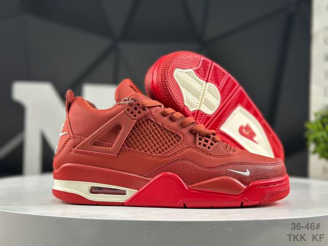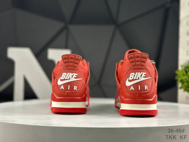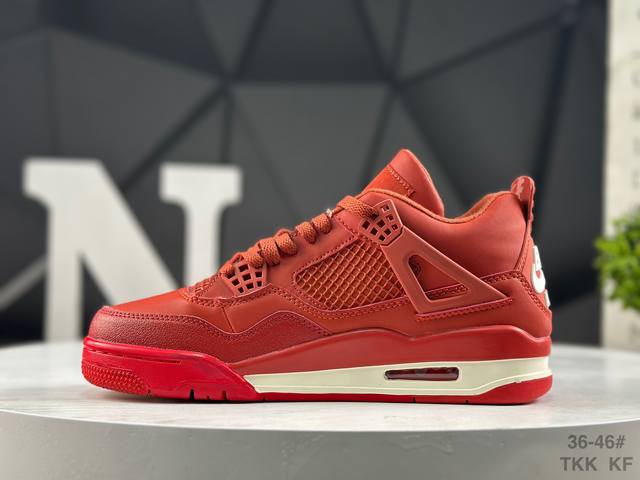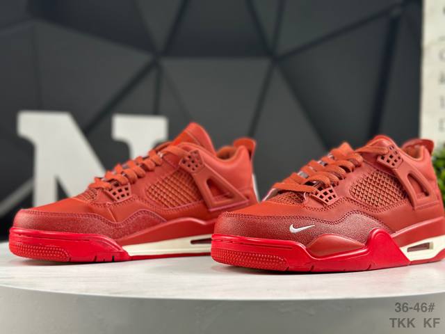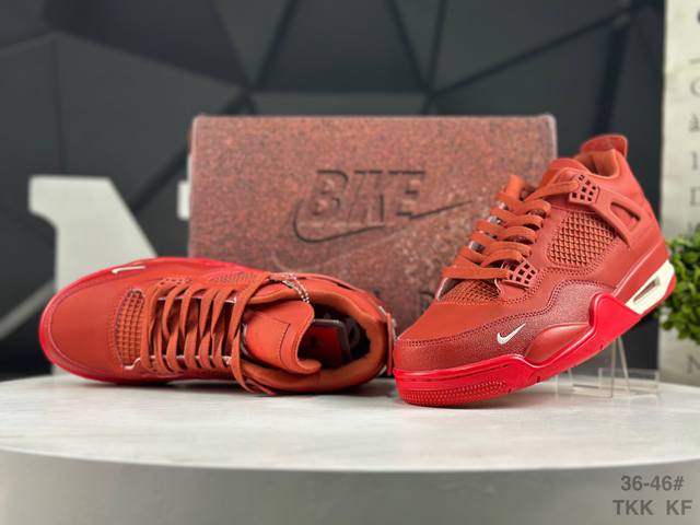 Nike Air Jordan AJ4 Retro. Developed using original cardboard lasts and factory-supplied leather, ensuring an authentic and perfect replica of the fourth generation. All details and manufacturing processes are consistent with the original shoe, including the toe box height, body curvature, and overall craftsmanship. Original TPU mesh lace buckles are correct, the inner mesh fabric is sharply defined, non-deformed, with no excess burrs, and a soft texture identical to the original. The only original shoe buckle mold on the market; the back shows a hidden injection port; original woven label; original Jumpman embroidery; three-stitch lacing technique on the middle of the toe; exclusive lacing method; printed midsole; four-line upper; beige masking paper for secure bonding; imported heel counter; naturally full heel; fluorescent stitching throughout; striving for ultimate perfection. Each pair is a work of art. Multiple QC checks exceed the quality control standards of factory-made goods, making it a truly inspection-free product. Product Code: Hf4340 800. Sizes: 36, 36.5, 37.5, 38, 38.5. 39 40 40.5 41 42 42.5 43 44 44.5 45 46 Tkk Kf
