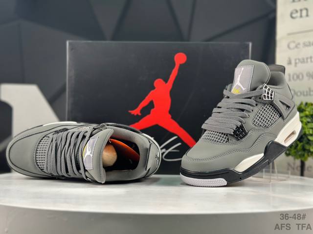 Nike Air Jordan Aj4 Retro full set of original cardboard lasts developed with original special leather materials to ensure the original flavor and perfect presentation of the fourth generation version. The toe curvature height and shoe body curvature data details and process are all consistent with the original shoes. The original TPU mesh shoelace buckle is correct, the inner mesh fabric has clear corners and does not deform, no excess burrs, and the texture is consistent with the original shoes on the market. The only original shoe buckle can be seen on the back of the mold with hidden injection molding port. The original woven label, the original flying man embroidery process, three-stitch jump in the middle of the little finger, exclusive shoe lacing technique, printed midsole fabric, four-line traction, beige textured paper for fixing, imported Hong Kong treasure blessing, natural and full heel, fluorescent line card points throughout the shoe, pursuing ultimate perfection, each pair is a work of art, multiple QC quality inspections exceed the company's quality control standards, and are truly inspection-free products.