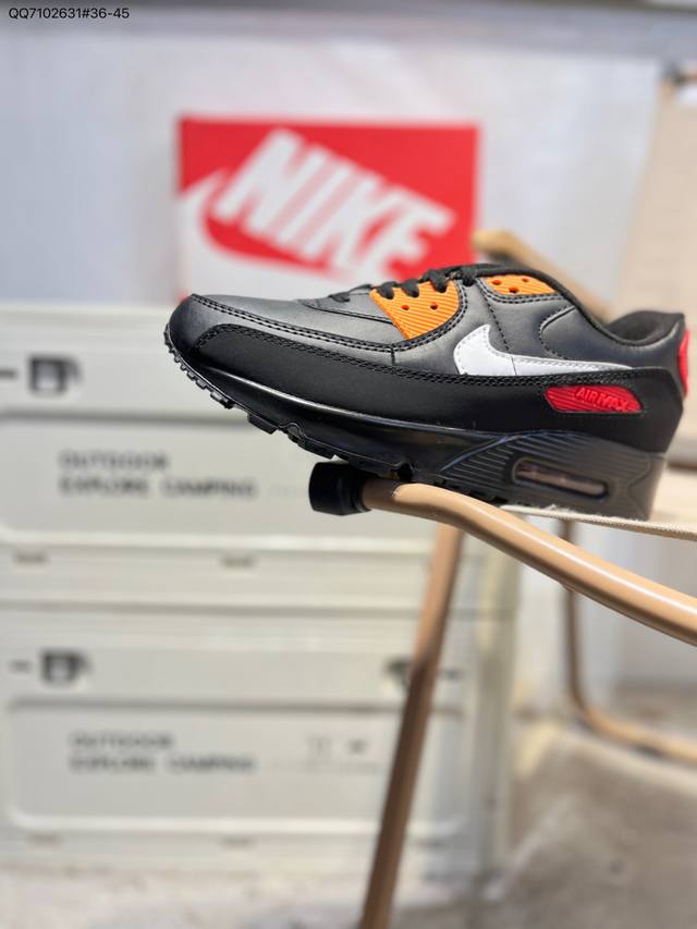 Nike Air Max 90 Classic Retro Cushioned Running Shoes. The upper is made of leather and woven fabric, with sharp stitching creating a cool and stylish visual effect. The mesh upper enhances breathability, making it extremely comfortable to wear. The classic Air Max cushioning remains prominent, and the feel is incredibly soft and bouncy. 302519 Qq7102631#36-45 DDD