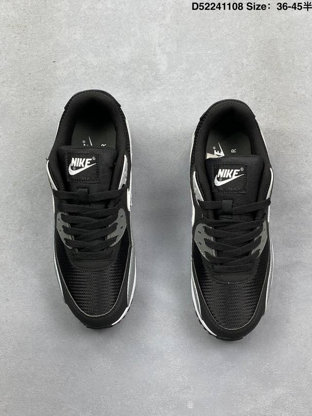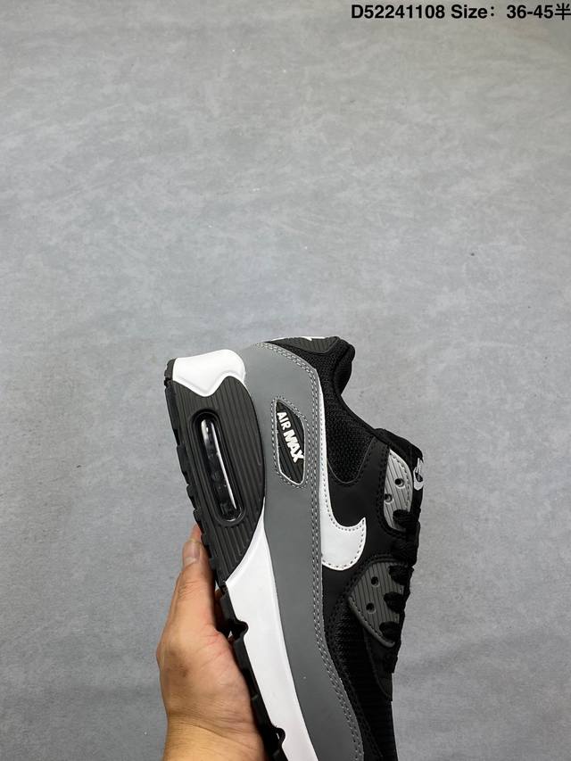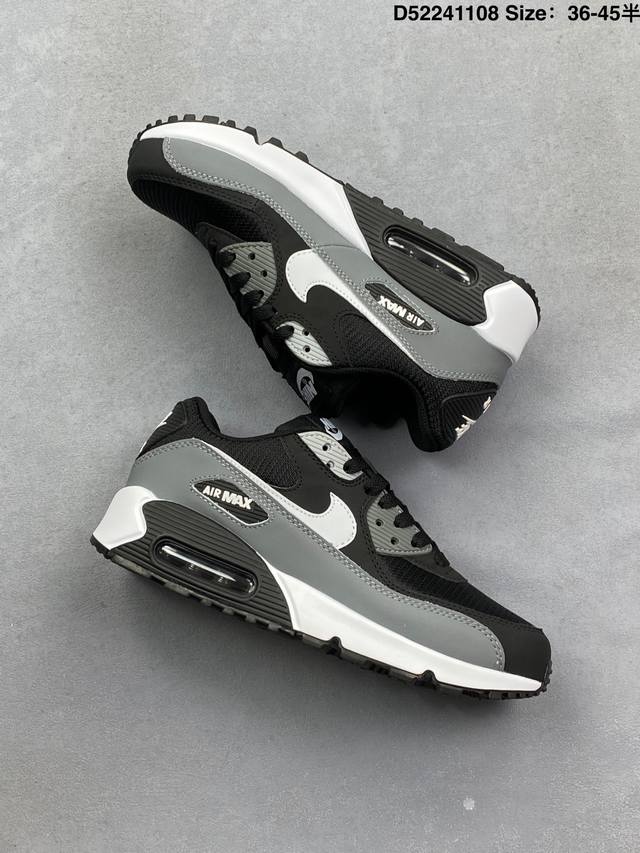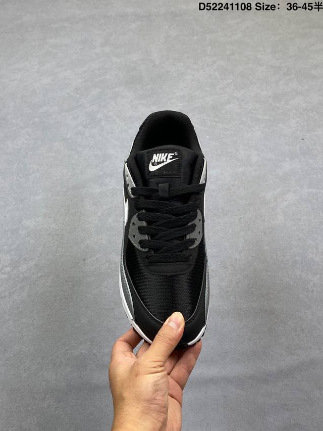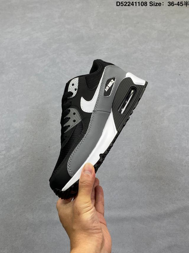 Nike Air Max 90 Classic Retro Cushioned Running Shoes. The upper is made of leather and woven fabric, with sharp stitching creating a cool and stylish visual effect. The mesh upper enhances breathability, making it extremely comfortable to wear. The classic Air Max cushioning remains prominent, and the feel is incredibly soft and bouncy. Product Code: Aj1285-018 Size: See picture Code: D52241108