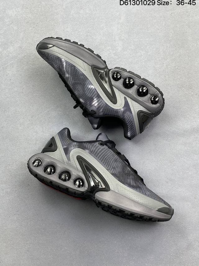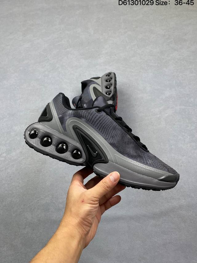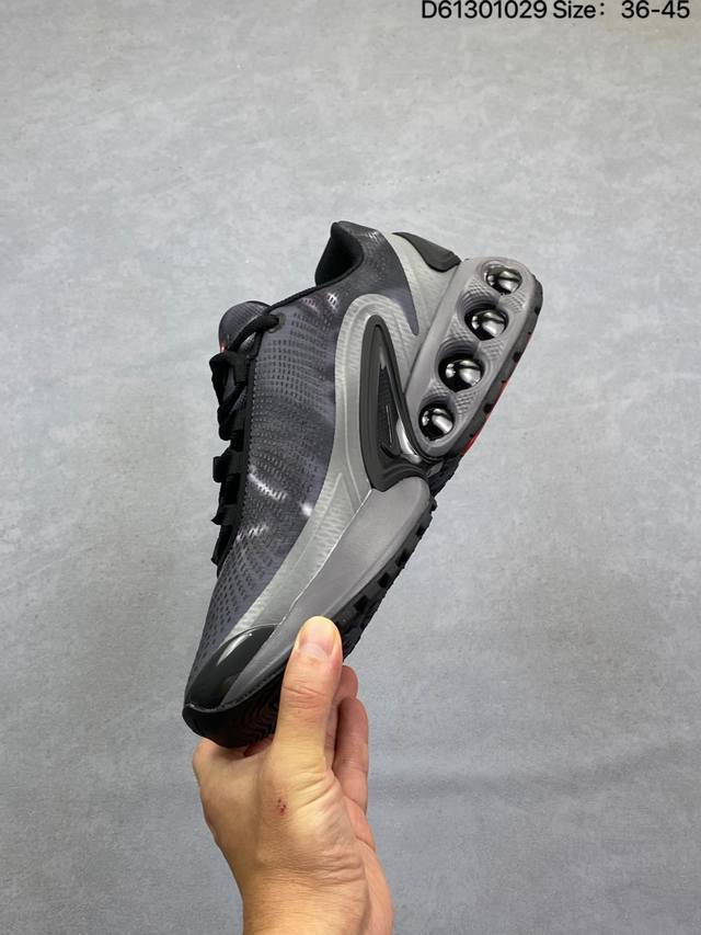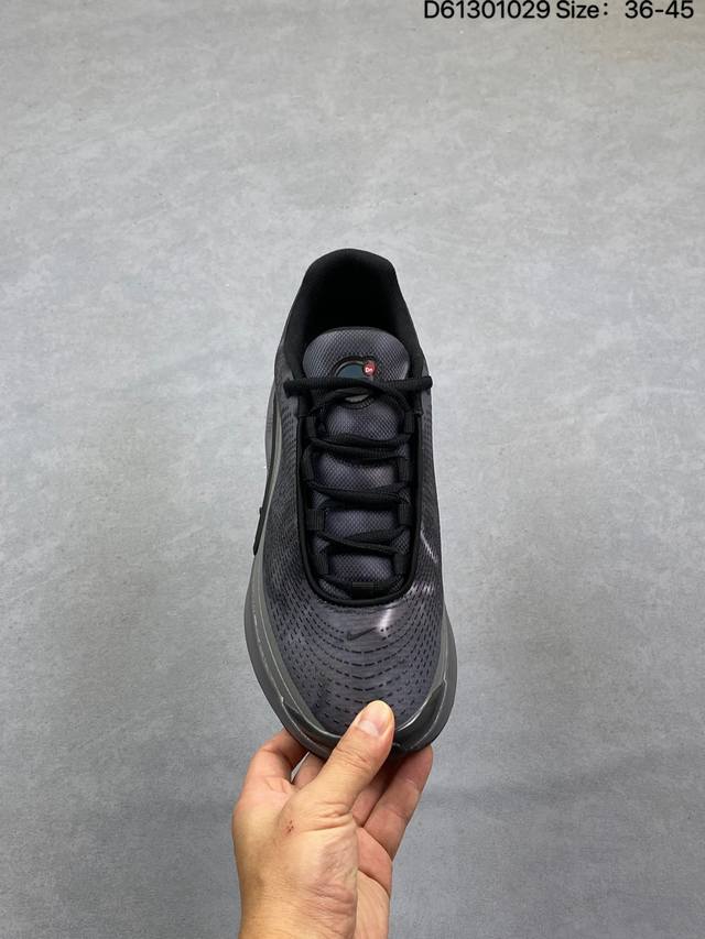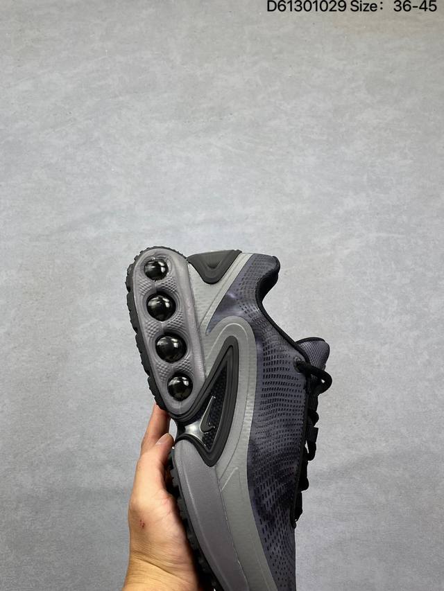 Nike Air Max DN8 Full-Length Air Cushion Running Shoes Fq7860-005. The shoe features a striking gradient fabric and dynamic wave-like structure upper, paired with a black midsole and outsole, and a mini black Swoosh logo. It utilizes eight Dynamic Air columns, with the "Dynamic Air" system running directly from heel to toe onto the rubber outsole, minimizing the distance to the ground for smooth weight transfer and an immediate, exceptional athletic experience. The upper combines eco-friendly fiber leather panels with a mesh fabric base, supported by a flexible thermoplastic frame. The midsole features lightweight EVA cushioning, with Air Zoom units in the forefoot and heel. Properly reinforced with TPU in the heel, the shoe incorporates a full-length Reactx foam midsole. The core feature is its eight-chamber air cushioning structure, with pressure settings adjusted for different areas. The upper design is reminiscent of the Air Max from the late 20th century. Product Code: Fq7860 Sizes: 36-45 Code: D61301029