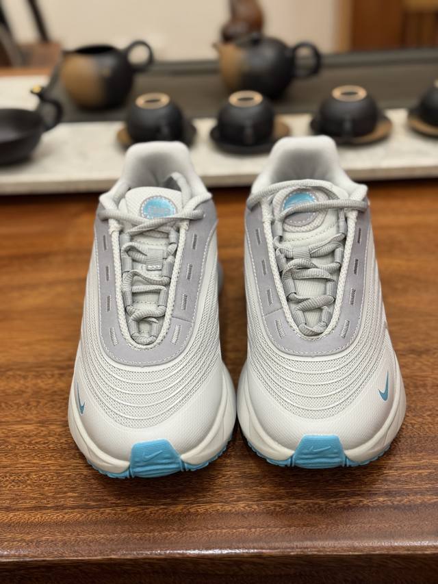 The Nike Air Max Fire sneakers are stylish and sleek, offering excellent support, and are a popular model in the Air Max series. The combination of synthetic materials and fabric in the upper creates outstanding durability and structural feel, while the Air Max cushioning in the heel provides a comfortable cushioning experience. The segmented sole echoes the design of the Air Max Plus, while the wavy side stripes pay homage to the classic Tailwind series. Notably, the reverse Swoosh on the heel adds personality and makes the shoe more eye-catching. Grey/Blue If2621-006