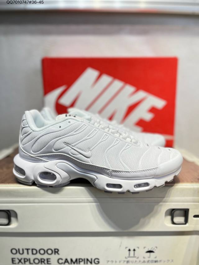 Nike Air Max Plus Lightweight Cushioning and Durable Running Shoes. The new upper material, combined with TPU wave texture and an inner bootie design, creates a sock-like fit and support, providing a more comfortable and snug fit. The dynamic mesh lacing system effectively locks the foot in place. TunedAir and MaxAir cushioning deliver a powerful and responsive cushioning experience. Product Code: Hq3029 Qq7010747#36-45
