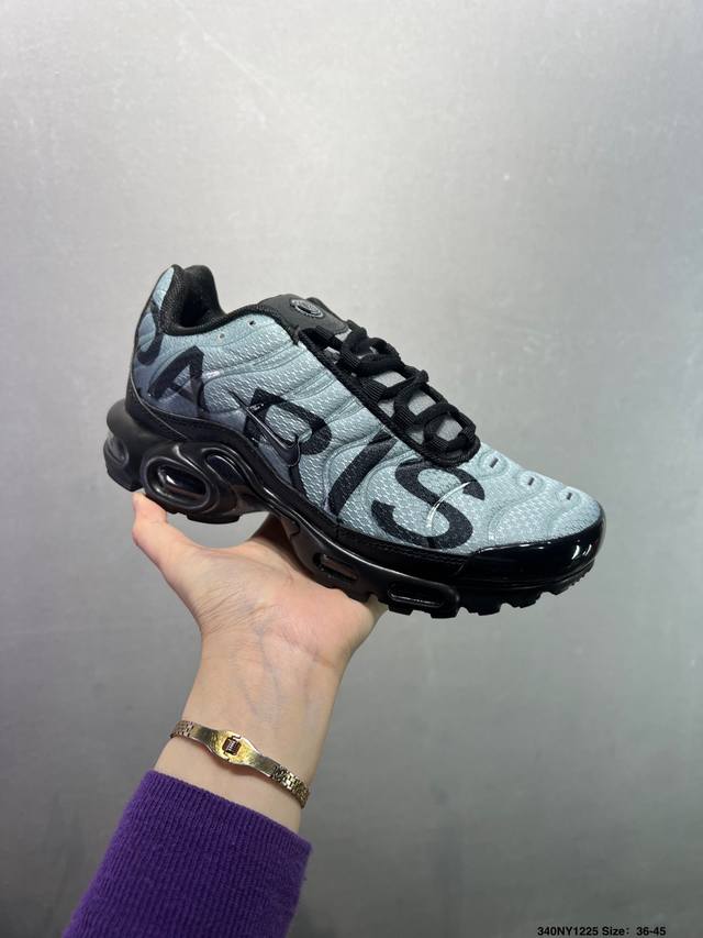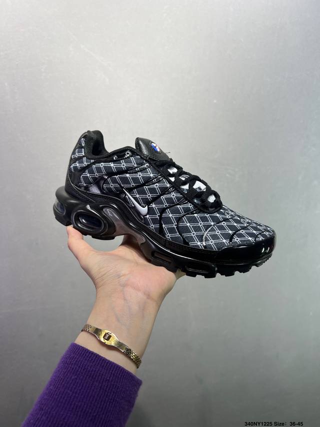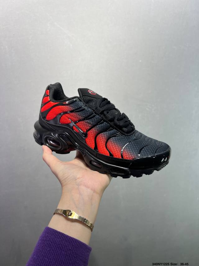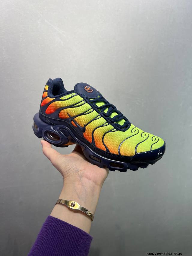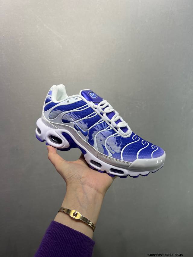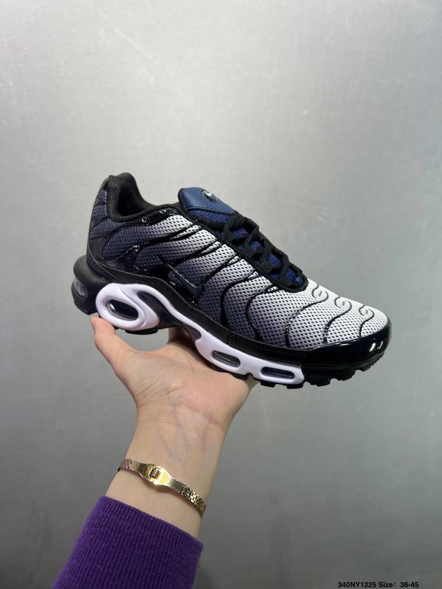 Nike Air Max Plus Retro Running Shoes, Casual Sports Shoes. This shoe features a forefoot windowed Air Max unit, a design unprecedented at the time. The lace eyelets are inspired by the human ribcage, while the sole support mimics the human spine. Even the air pressure of each unit is clearly marked. This design still looks incredibly high-tech today. Product Code: Dm2362-100. Size: As shown. ID: 340Ny1225.