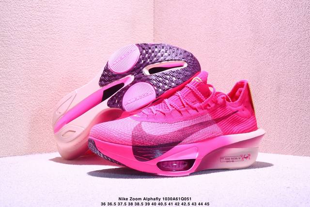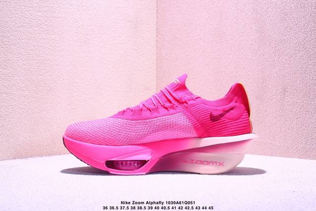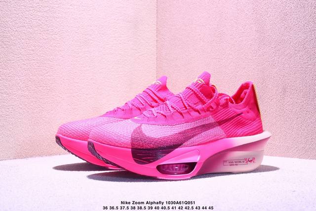 The all-new marathon super running shoe, the lightest and most tested Nike Alphafly ever. Tested and validated by elite marathon runners and featuring Air Zoom cushioning, it aims to help runners achieve breakthroughs and better results. During its development, Alphafly 3 helped Nike athlete Kelvin Kiptum break the marathon world record with a time of 0:35. The Alphafly's dynamic design remains unchanged, retaining the Air Zoom cushioning unit, Flyplate carbon fiber plate, and Zoomx foam. However, the overall system's construction method has been slightly adjusted, optimized, and improved to enhance its support for athletes. Key updates include a one-piece sole providing a smooth and stable "heel-to-toe" transition; a wider full-length Flyplate carbon fiber plate providing stable propulsion; a new Fast Shot outsole ensuring excellent traction and grip; and a new Atomknit 3.0 upper providing enhanced control, breathability, and midfoot support.