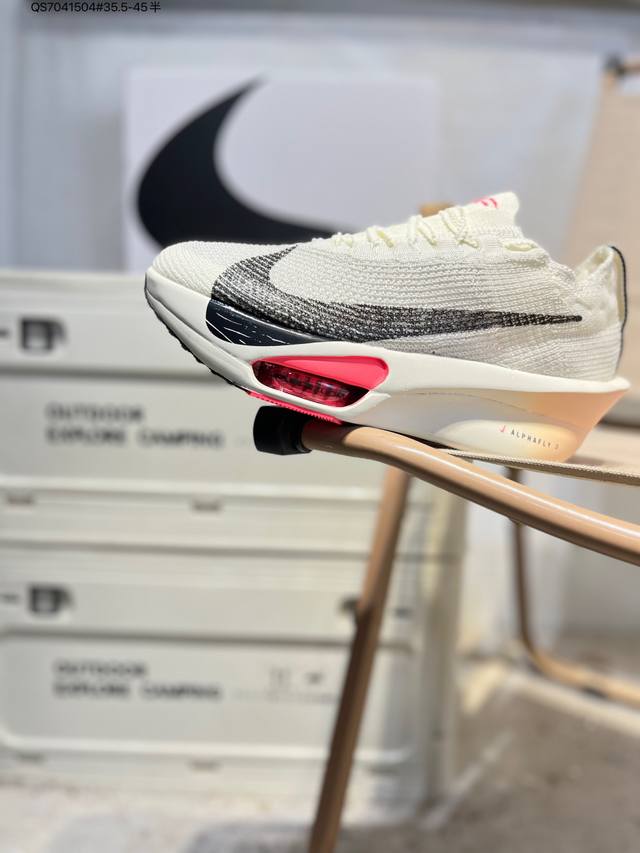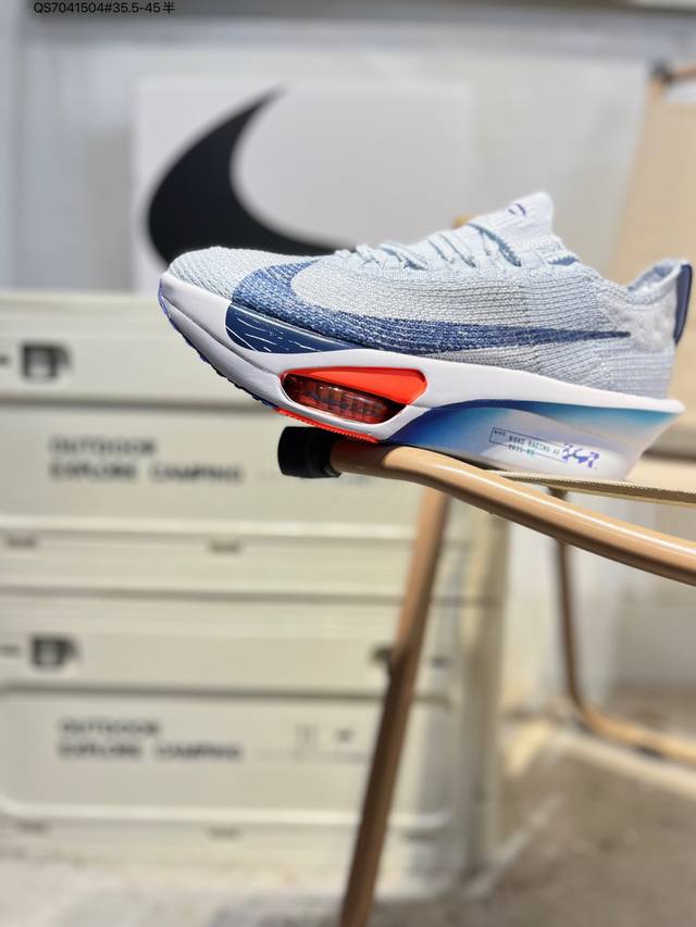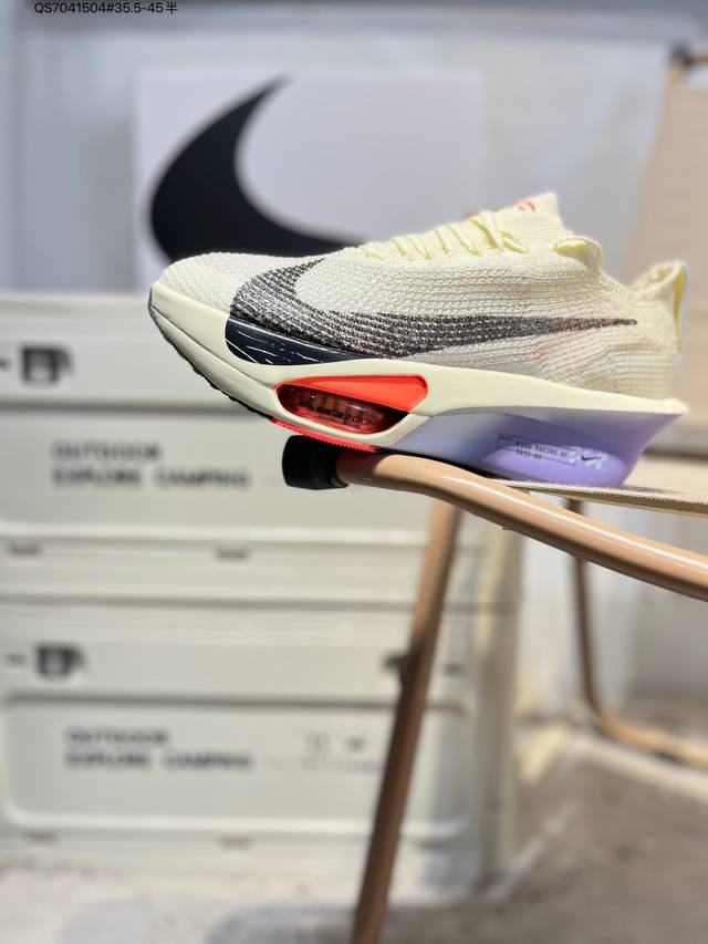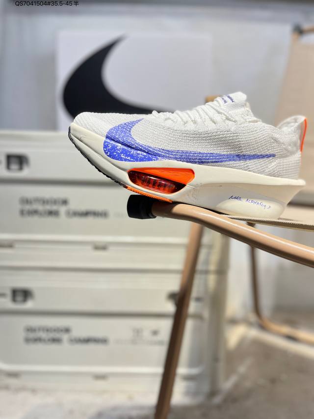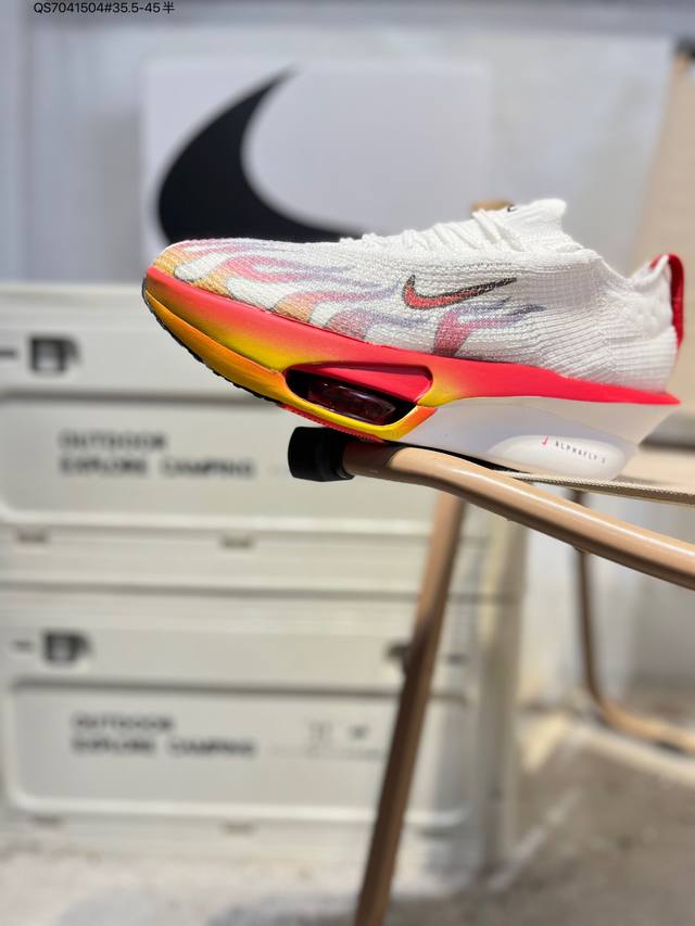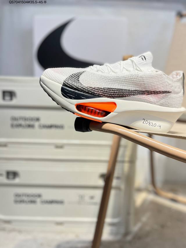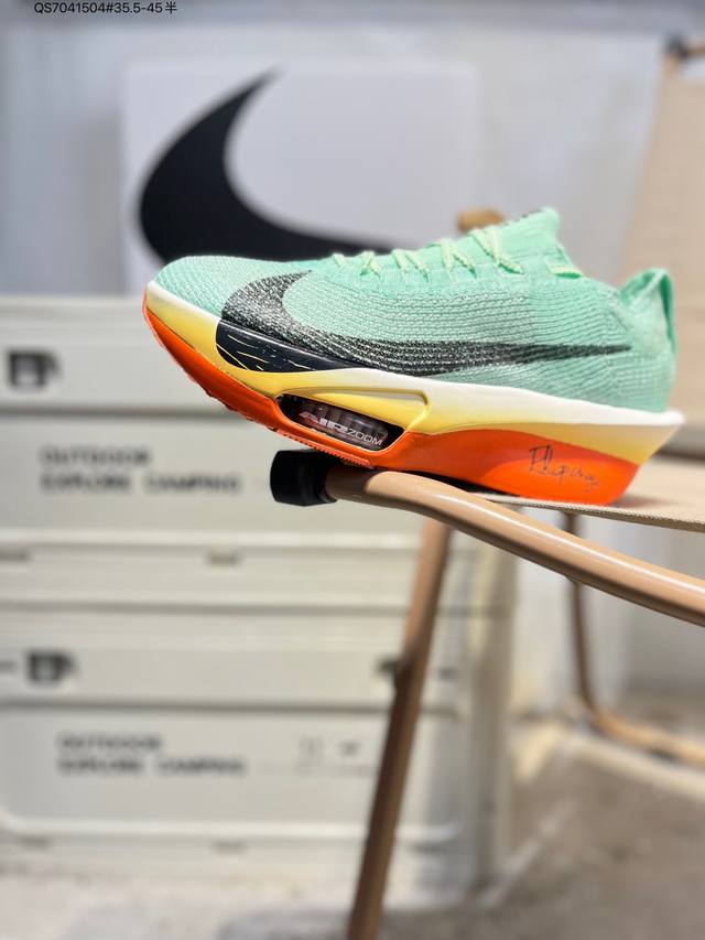 Nike Air Zoom Alphafly Next% 3 Marathon Super Shoe. The lightest and most tested Nike Alphafly ever, tested and validated by elite marathon runners and featuring Air Zoom cushioning, designed to help runners achieve breakthroughs and better results. During its development, Alphafly 3 helped Nike athlete Kelvin Kiptum break the marathon world record with a time of 2:00:35. The Alphafly's dynamic design remains unchanged, retaining the Air Zoom unit, Flyplate carbon fiber plate, and Zoomx foam. However, the overall system's construction method has been slightly adjusted, optimized, and improved to enhance its support for athletes. Key updates include a one-piece sole providing a smooth and stable "heel-to-toe" transition; a wider full-length Flyplate carbon fiber plate providing stable propulsion; a new Fast Shot outsole ensuring excellent traction and grip; and a new Atomknit 3.0 upper providing enhanced control, breathability, and midfoot support. Product Code: Hv4318 Qs7041504#35.5-45 half DDD