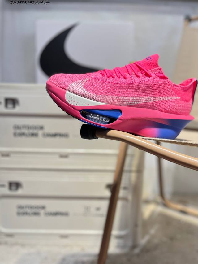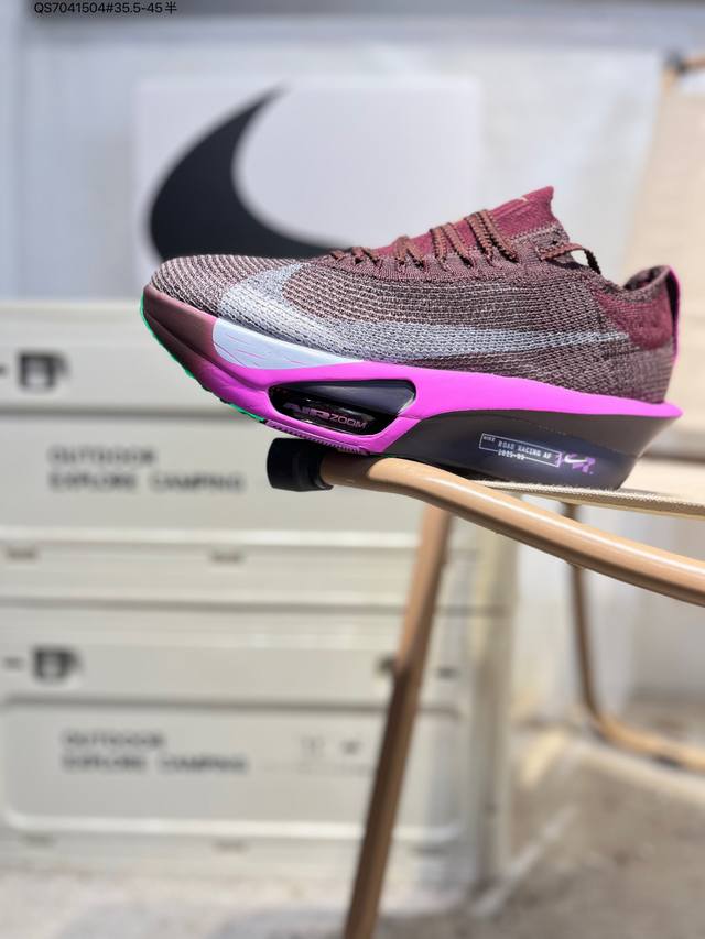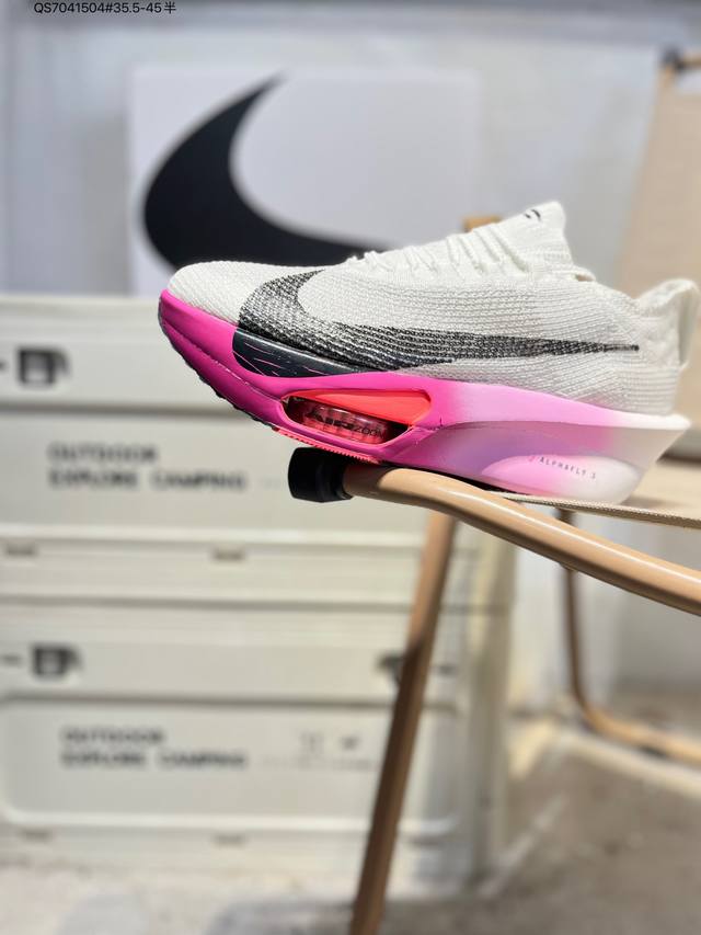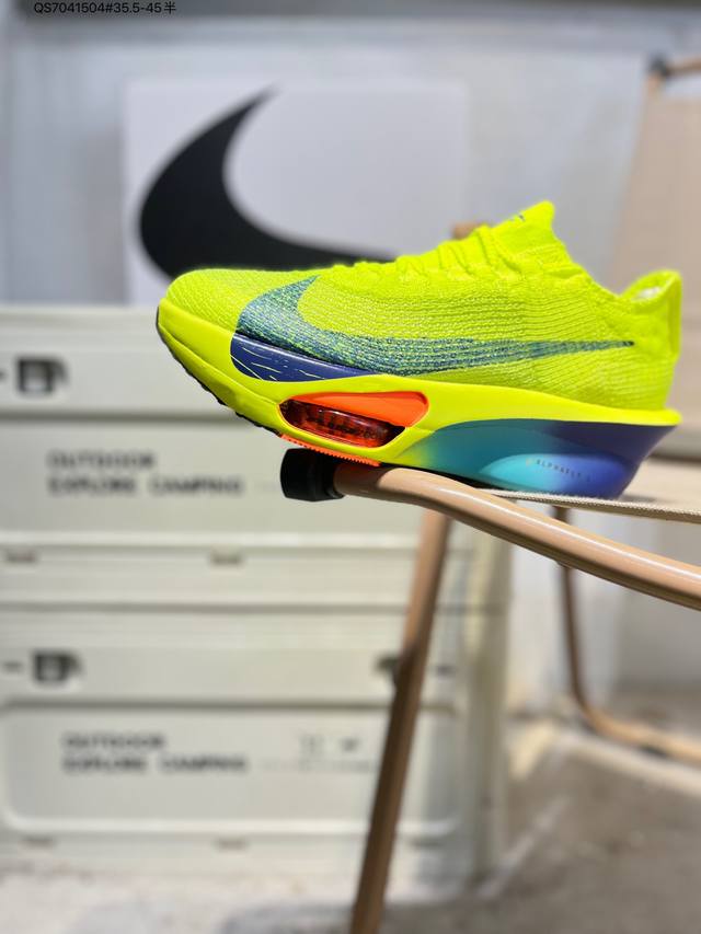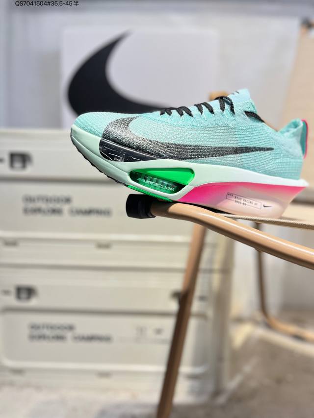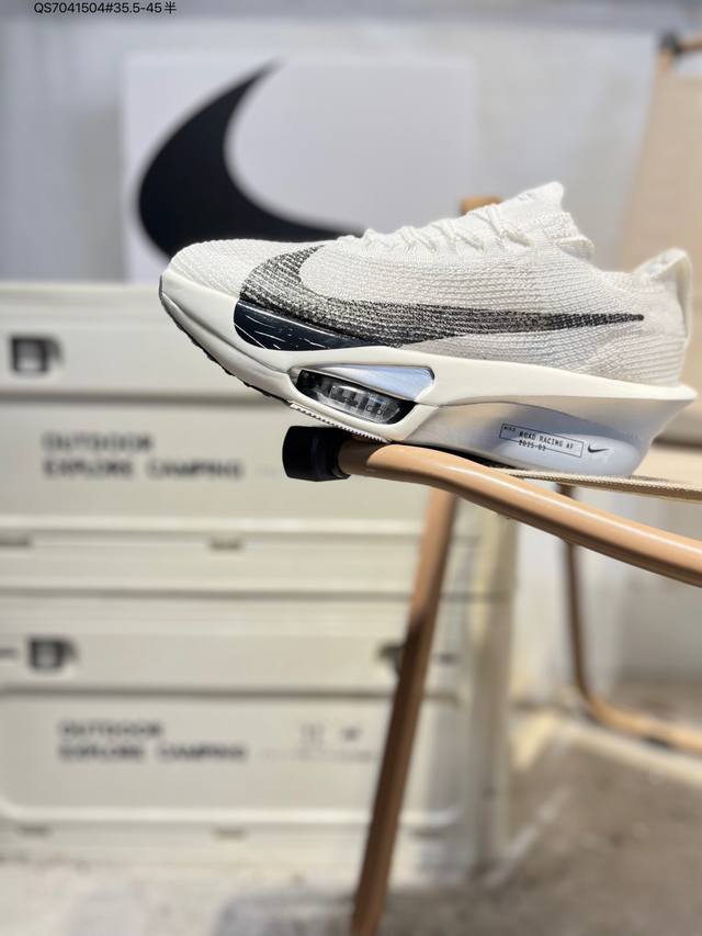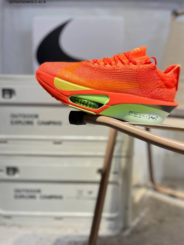 Nike Air Zoom Alphafly Next% 3 Marathon Super Shoe. The lightest and most tested Nike Alphafly ever, tested and validated by elite marathon runners and featuring Air Zoom cushioning, designed to help runners achieve breakthroughs and better results. During its development, Alphafly 3 helped Nike athlete Kelvin Kiptum break the marathon world record with a time of 2:00:35. The Alphafly's dynamic design remains unchanged, retaining the Air Zoom unit, Flyplate carbon fiber plate, and Zoomx foam. However, the overall system's construction method has been slightly adjusted, optimized, and improved to enhance its support for athletes. Key updates include a one-piece sole providing a smooth and stable "heel-to-toe" transition; a wider full-length Flyplate carbon fiber plate providing stable propulsion; a new Fast Shot outsole ensuring excellent traction and grip; and a new Atomknit 3.0 upper providing enhanced control, breathability, and midfoot support. Product Code: Hv4318 Qs7041504#35.5-45 half DDD