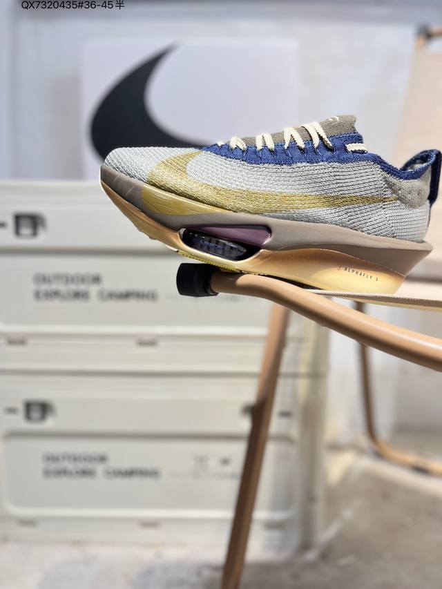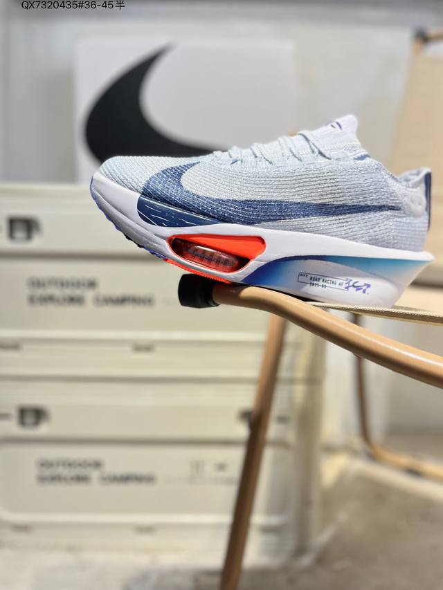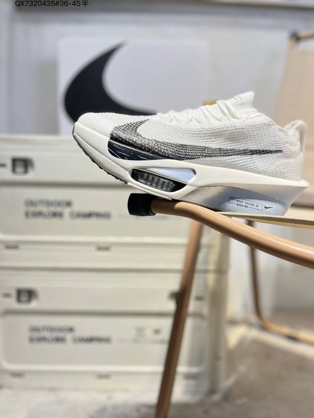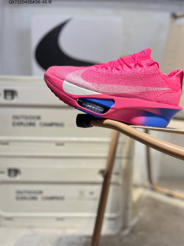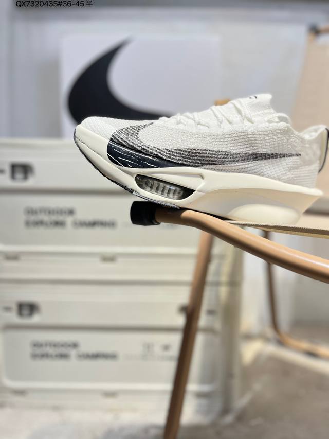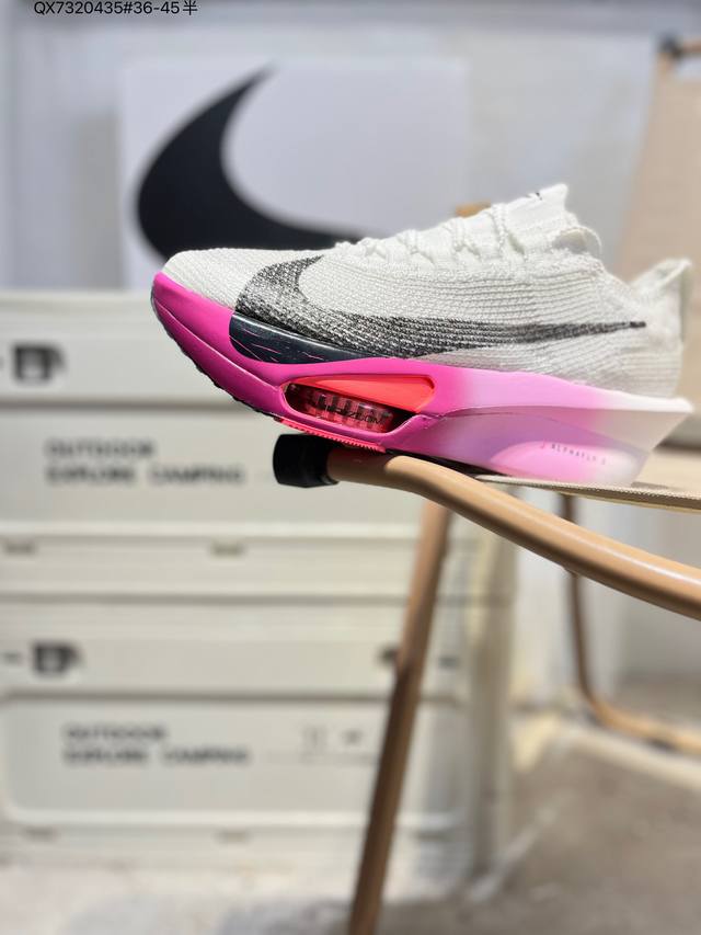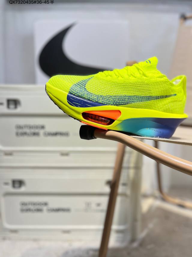 Nike Air Zoom Alphafly Next% 3 Marathon: The newest marathon super running shoe. The lightest and most tested Nike Alphafly ever, tested and validated by elite marathon runners and featuring Air Zoom cushioning, designed to help runners achieve breakthroughs and better results. During its development, Alphafly 3 helped Nike athlete Kelvin Kiptum break the marathon world record with a time of 0:35. The Alphafly's dynamic design remains unchanged, retaining the Air Zoom cushioning unit, Flyplate carbon fiber plate, and Zoomx foam. However, the overall system's construction method has been slightly adjusted, optimized, and improved to enhance its support for athletes. Key updates include a one-piece sole providing a smooth and stable "heel-to-toe" transition; a wider full-length Flyplate carbon fiber plate providing stable propulsion; a new Fast Shot outsole ensuring excellent traction and grip; and a new Atomknit 3.0 upper providing enhanced control, breathability, and midfoot support. Product Code: Ib4201 Qx7320435#36-45 half