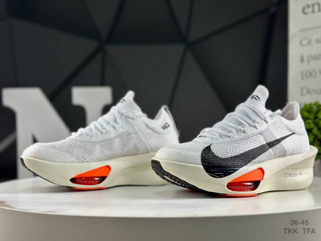 The new marathon super running shoe is the lightest and most tested NK Alphafly ever. It has been tested and verified by elite marathon athletes and is equipped with Air Zoom air cushioning. It is designed to help runners achieve breakthroughs and achieve better results. During the development process, Alphafly 3 helped Nike athlete Kelvin Kiptum to break the marathon world record with a time of 0:35. The power design of Alphafly has not changed. The Air Zoom air cushion unit, Flyplate carbon fiber plate and Zoomx foam are not changed. However, the manufacturing method of the overall system has been slightly adjusted to optimize and enhance the help to athletes. Major updates include a one-piece sole that provides a smooth and stable "heel to toe" transition; a wider, full-length Flyplate carbon fiber plate that provides stable propulsion; a new Fast Shot outsole that ensures excellent traction and grip; a new Atomknit 3.0 upper that provides greater control, breathability and midfoot support